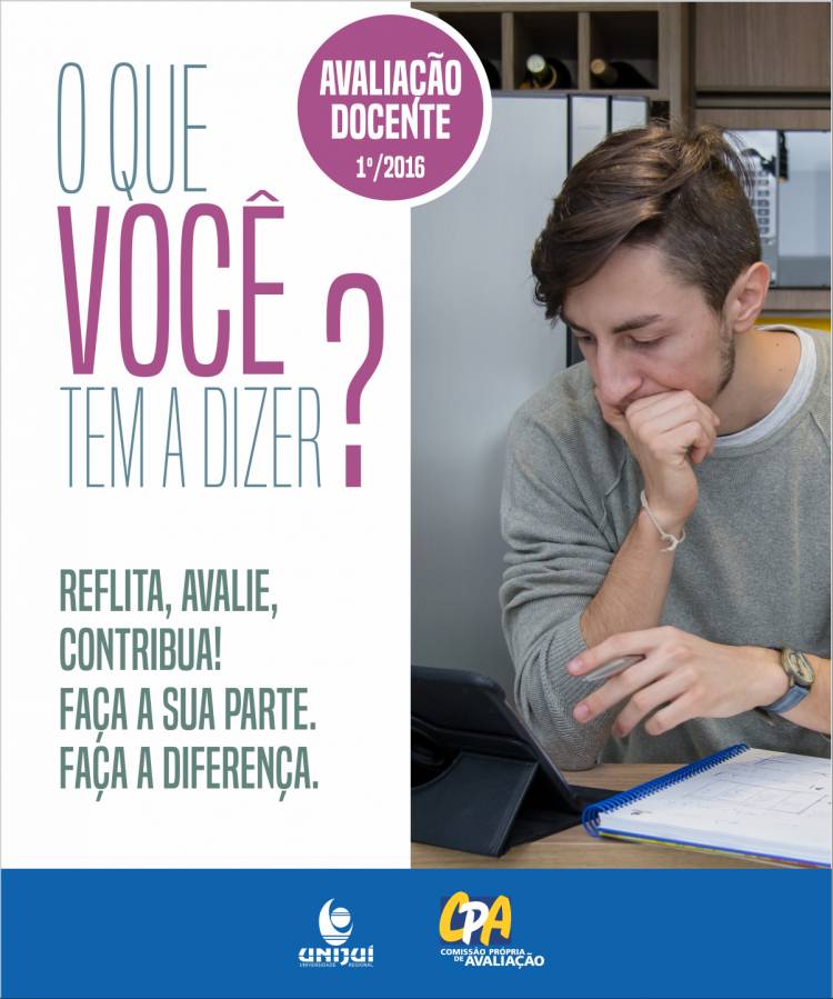Todos os semestres os estudantes da UNIJUÍ são convidados a falar o que pensam. No Portal do Aluno é disponibilizado o questionário online da Avaliação Docente, que os alunos respondem para avaliar as disciplinas cursadas no semestre e a atuação dos professores. O processo é rápido e sigiloso, ou seja, o estudante não é identificado, é levada em conta apenas a sua opinião.