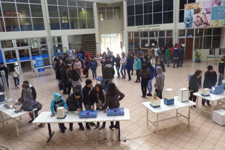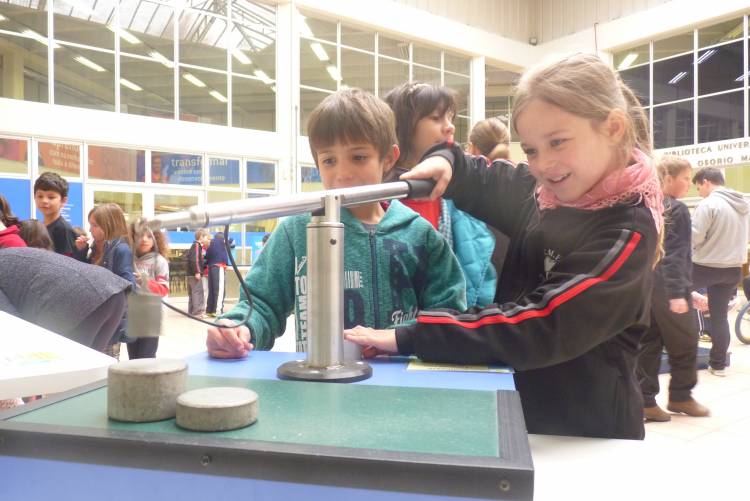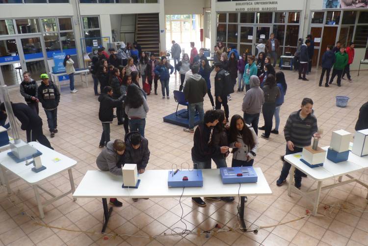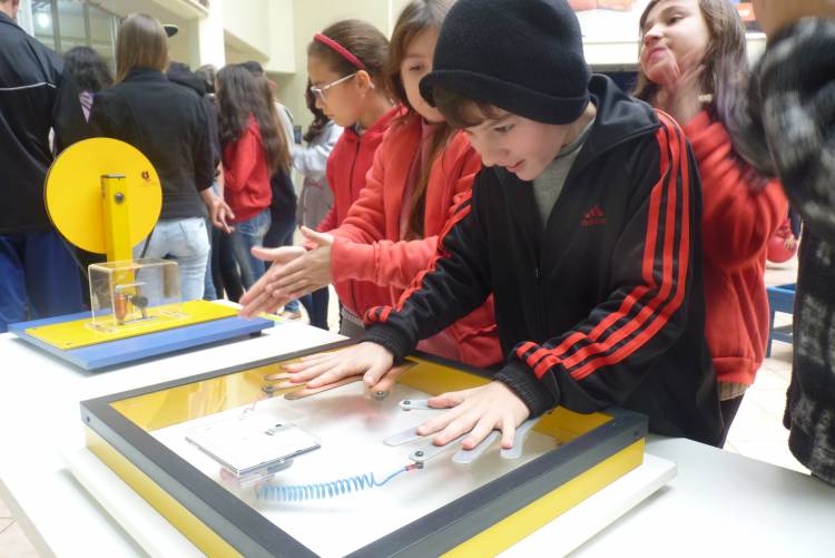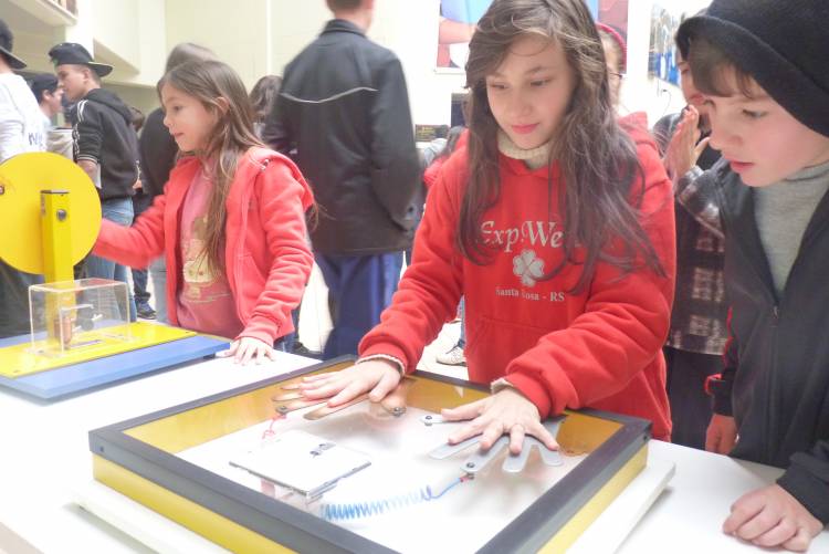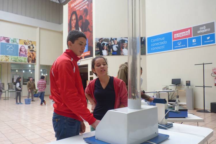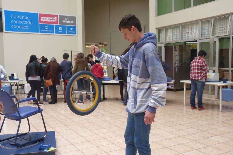 Escolas do Ensino Fundamental visitam a exposição interativa de experimentos de Física na UNIJUÍ Campus Santa Rosa.