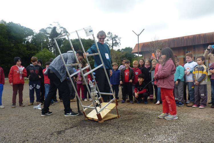 O Projeto Física para Todos da UNIJUÍ está realizando uma maratona de exposições nos Campi da Universidade. O Campus Santa Rosa já está no terceiro dia de exposição recebendo estudantes do Ensino Fundamental. A exposição teve início na quarta-feira, com atividades interativas, lançamentos de foguetes, sessões audiovisuais e documentários.