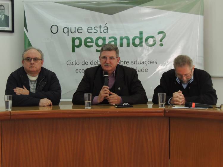 Na manhã desta terça-feira, o curso de Ciência Econômicas da Unijuí reuniu, na Sala dos Conselhos da Universidade, no Campus Ijuí, imprensa e convidados para um debate com o tema “Perspectivas da Economia Brasileira”. Neste evento, o curso deu início ao Projeto “O que está pegando”, que é uma série de debates sobre temas conjunturais da economia.