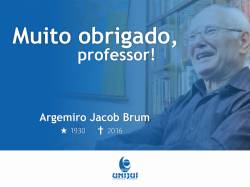 É com muito pesar que a Universidade Regional do Noroeste do Estado do Rio Grande do Sul – Unijuí, informa o falecimento do professor Argemiro Jacob Brum (1930-2016), um dos fundadores da FIDENE/UNIJUÍ. Argemiro deixa esposa, filhos e netos.