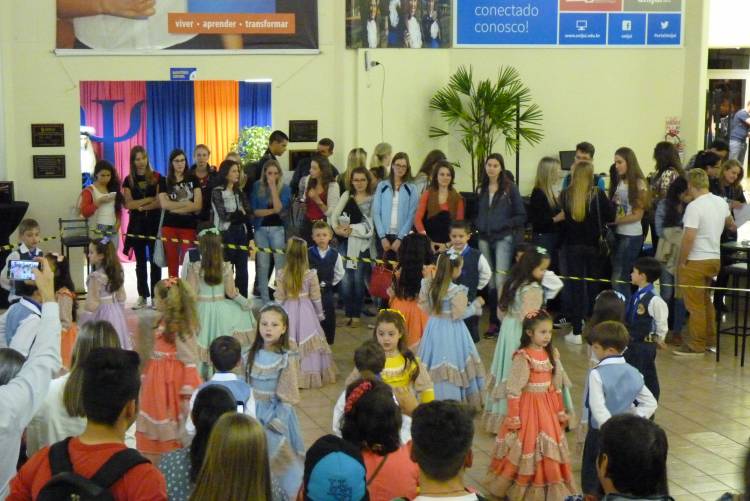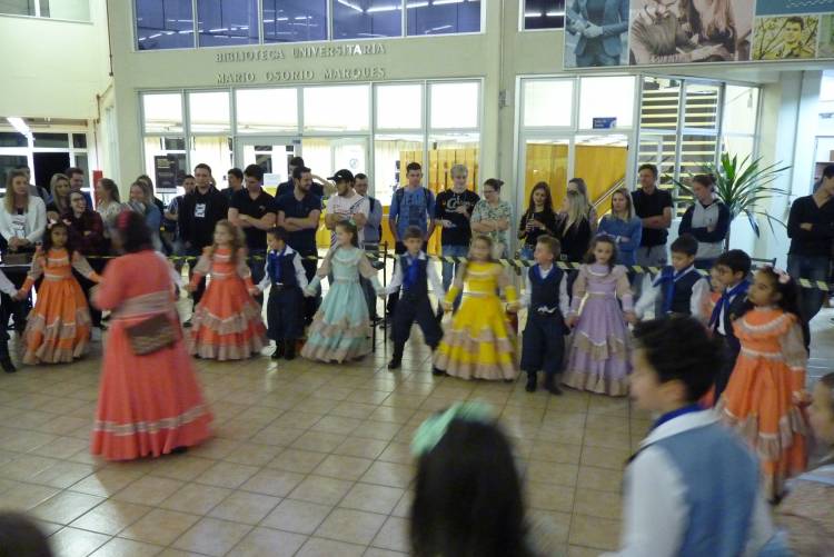 A primeira noite do Salão do Conhecimento da UNIJUÍ Campus Santa Rosa teve intensa programação. A abertura do evento ocorreu com a apresentação artística do Grupo de Tradições Gaúchas Sepé Tiarajú, através do grupo “Dente de Leite”. Na sequência os estudantes participaram de apresentações de pôsteres em sala de aula e tiveram a oportunidade de se integrarem a oficina sobre as “Normas da ABNT”.