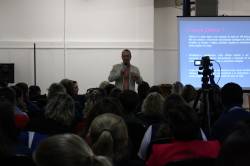 Com o mesmo objetivo do “Outubro Rosa”, de promover a conscientização sobre a doença, a palestra promovida pelo Núcleo de Desenvolvimento de Recursos Humanos reuniu funcionários no Salão Azul da Universidade.