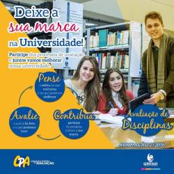 Pense, avalie e contribua deixando sua marca na Universidade. A Comissão Própria de avaliação (CPA) está com o período de Avaliação das Disciplinas em aberto. Aproveite a oportunidade de ser ouvido a avalie.