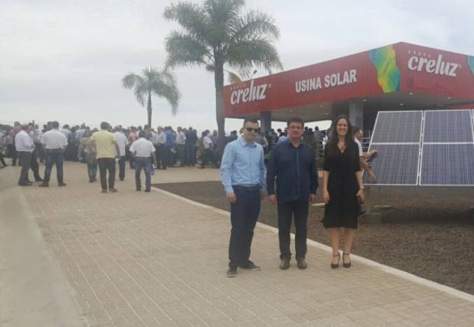 Os professores do Departamento de Ciência Exatas e Engenharia (DCEEng), da Unijuí, Mauricio de Campos, Taciana Paula Enderle e Douglas Camponogara, participaram, no dia 9 de dezembro, da inauguração da primeira Usina de Energia Solar do Estado, em Boa Vista das Missões.