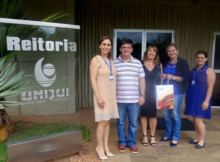 A Reitoria, o Departamento de Ciências Exatas e Engenharias, e a Unidade de Educação Continuada da Unijuí receberam a diretora de Apoio e Qualificação Profissional do SENGE, Nanci Begnini Giugno, nesta quarta-feira (22) para reforçar a parceria já existente por meio da assinatura do Termo Aditivo ao Acordo de Cooperação-Científico-Cultural entre as duas instituições. Essa medida viabiliza a concessão de desconto especial na mensalidade de cursos oferecidos pela Universidade para sócios do SENGE, incluindo cursos de graduação, pós-graduação (Lato Sensu) e cursos de extensão.