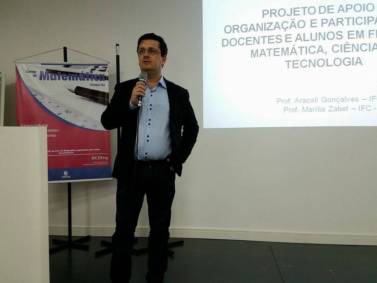 Nesta sexta-feira, 10, e no sábado, 11, no auditório do Departamento de Ciências Exatas e Engenharias (DCEEng), a Unijuí sedia uma formação que é o primeiro passo para a realização da primeira Feira de Matemática a ser realizada no Rio Grande do Sul. A abertura do evento de formação contou com a presença da Reitora da Unijuí, professora Cátia Nehring, do Secretário de Educação de Ijuí, Eleandro Lizot, da Coordenadora Pedagógica Adjunta da 36ª CRE, Eveline Eberle e do Chefe do DcEEng, professor Maurício de Campos.
