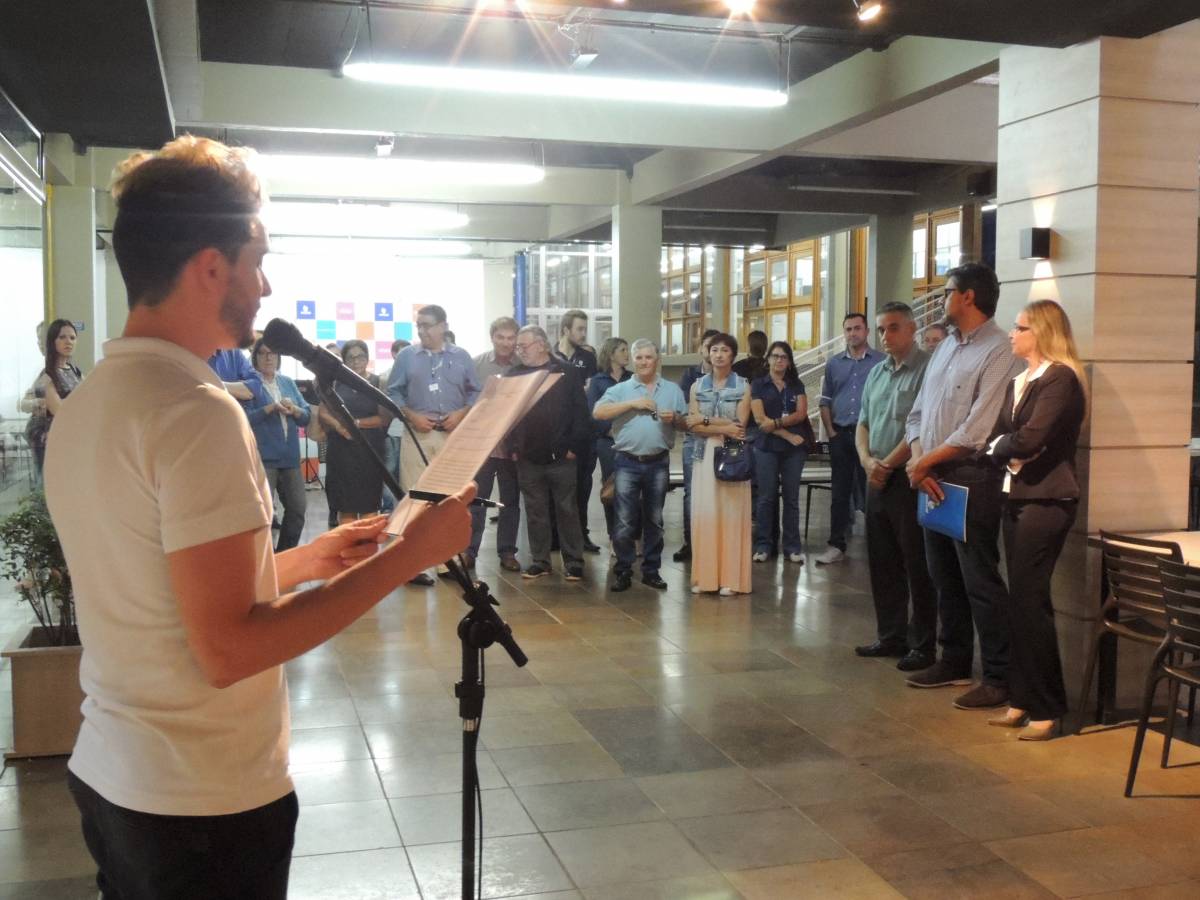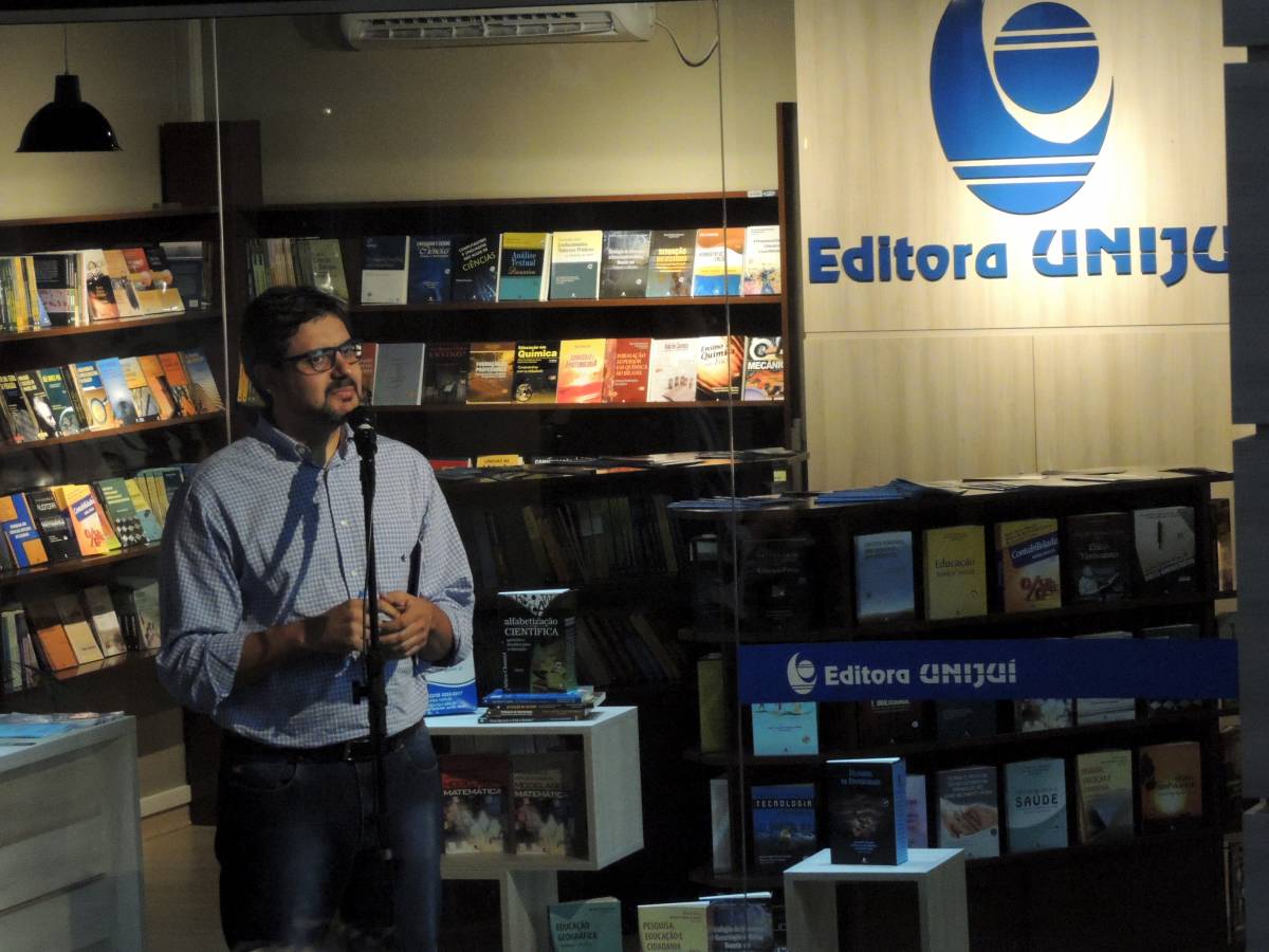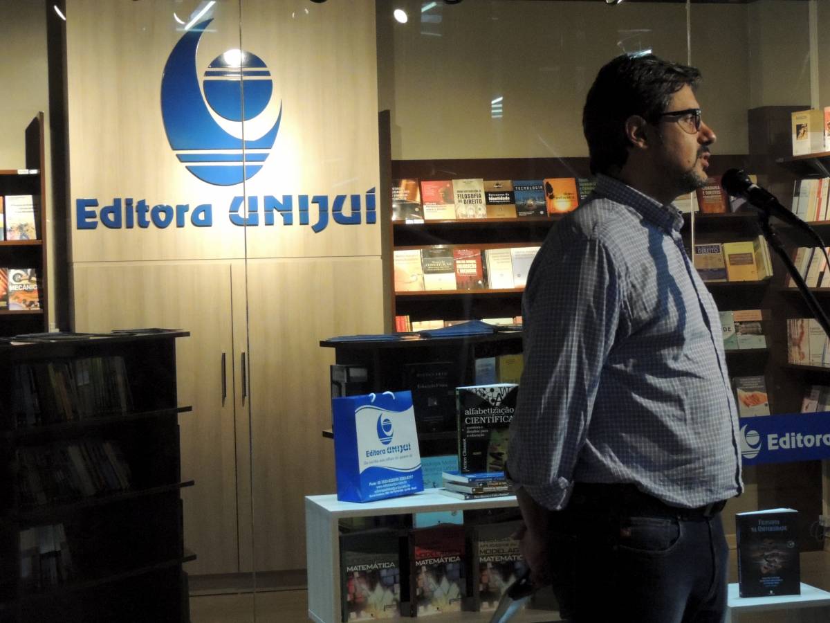 "Vamos transformar este espaço da editora em um espaço de festa intelectual", observou o professor Fernando González, Vice-Reitor de Pós-Graduação, Pesquisa e Extensão e editor chefe da Editora Unijuí, em seu pronunciamento no ato de inauguração.