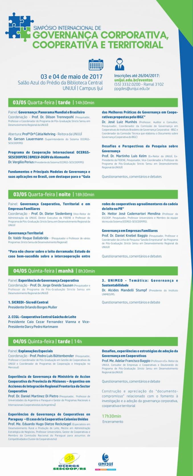 A Unijuí sediou, nesta quarta e quinta-feira, no Auditório Azul da Biblioteca Mario Osorio Marques, no Campus Ijuí, o Iº Simpósio Internacional de Governança, Corporativa, Cooperativa e Territorial.