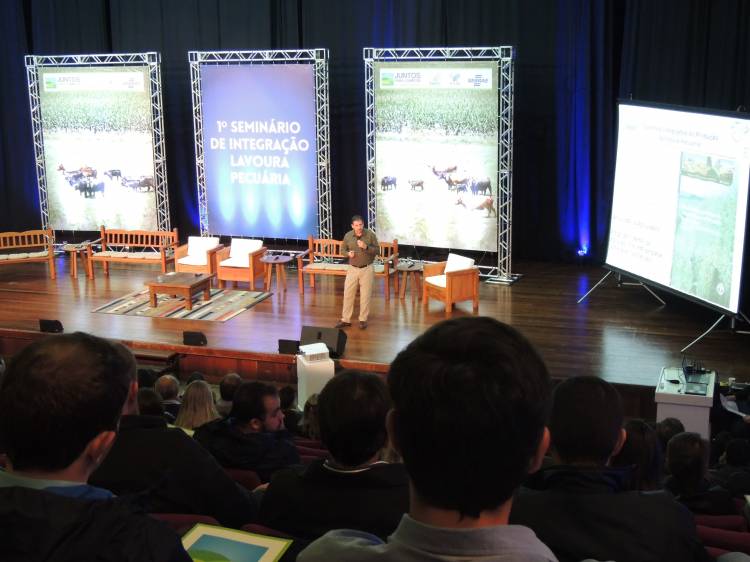 Com o objetivo de evidenciar os ganhos para os negócios do campo na integração entre a lavoura e a pecuária, o 1º Seminário de Integração Lavoura-Pecuária, realizado nesta sexta-feira, na Unijuí, trouxe o conhecimento e exemplos do Programa Juntos para Competir, desenvolvido em parceria entre Farsul, Senar-RS e Sebrae/RS ao público no Salão de Atos Argemiro Jacob Brum. A Unijuí, através da Agência de Inovação e Tecnologia (AGIT), foi parceira das entidades na realização do evento.