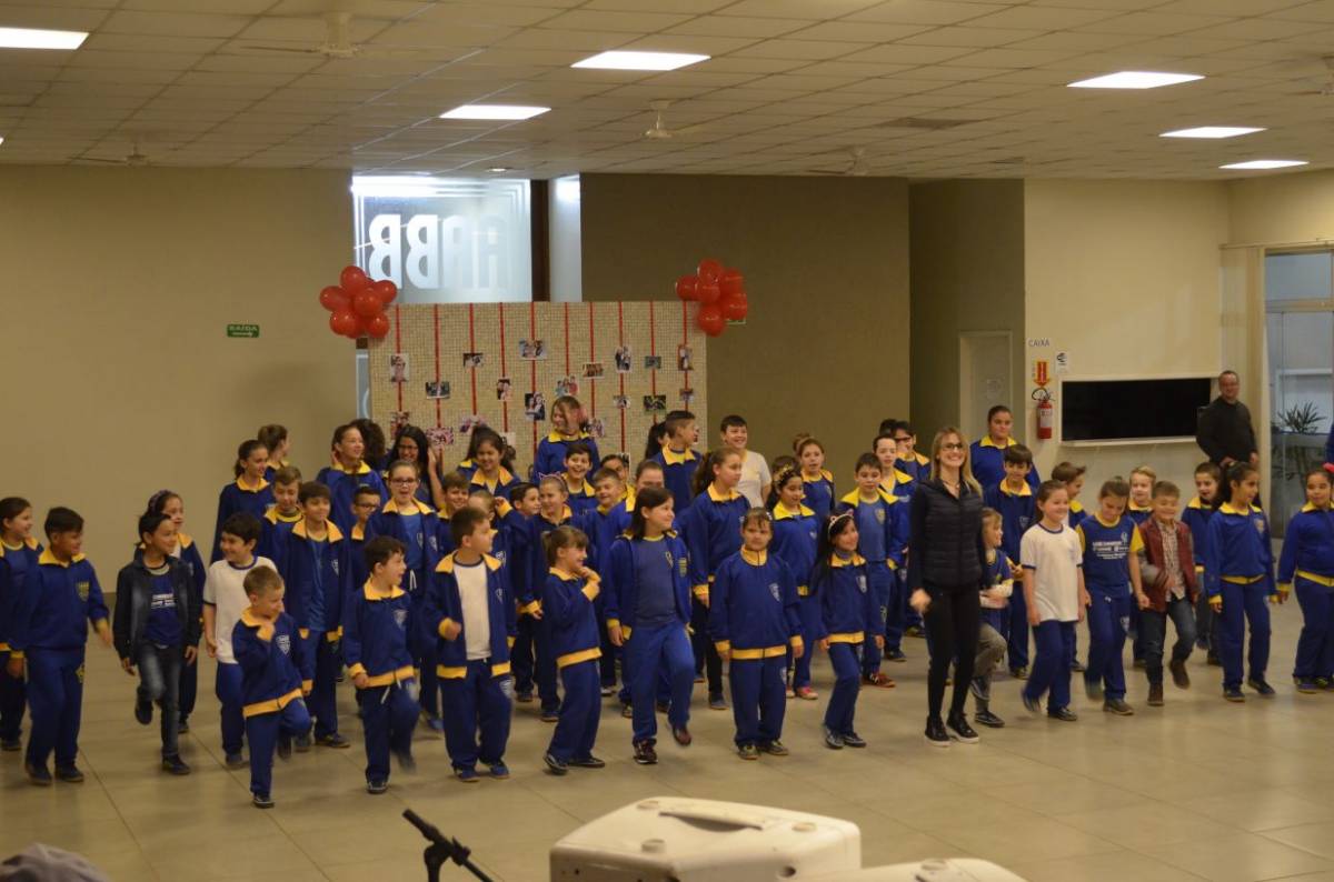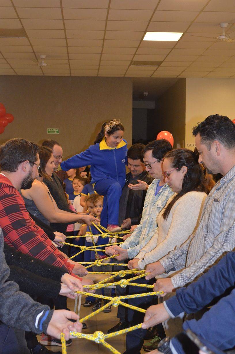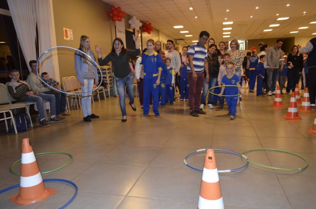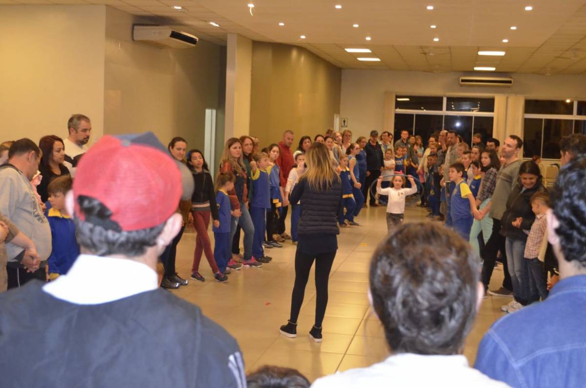 Estudantes do Curso de Pedagogia da UNIJUÍ Campus Santa Rosa, realizaram atividades de matroginástica com alunos e seus familiares na Escola Municipal de Educação Infantil Crescer Feliz, na noite de terça-feira, dia 08, no Ginásio da Escola.
