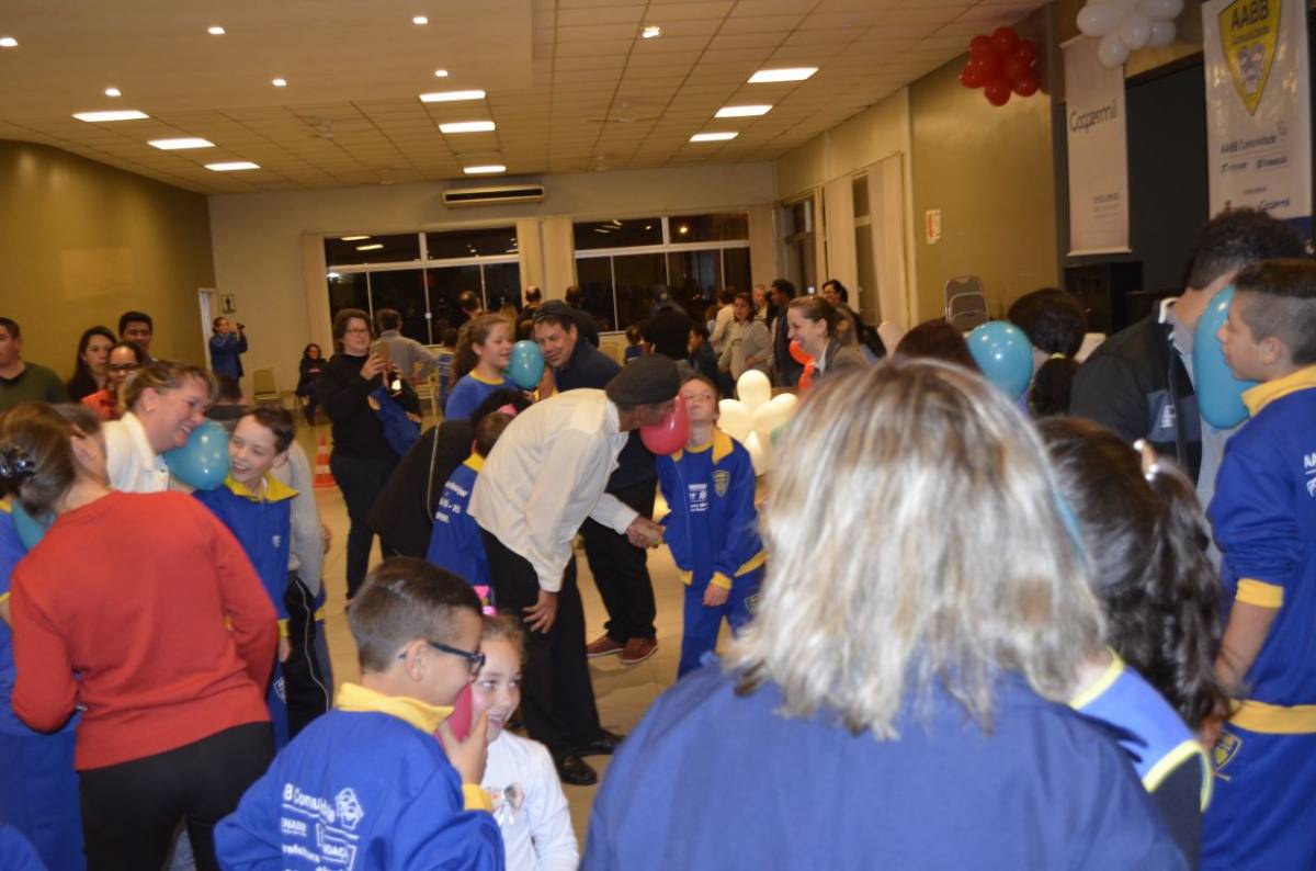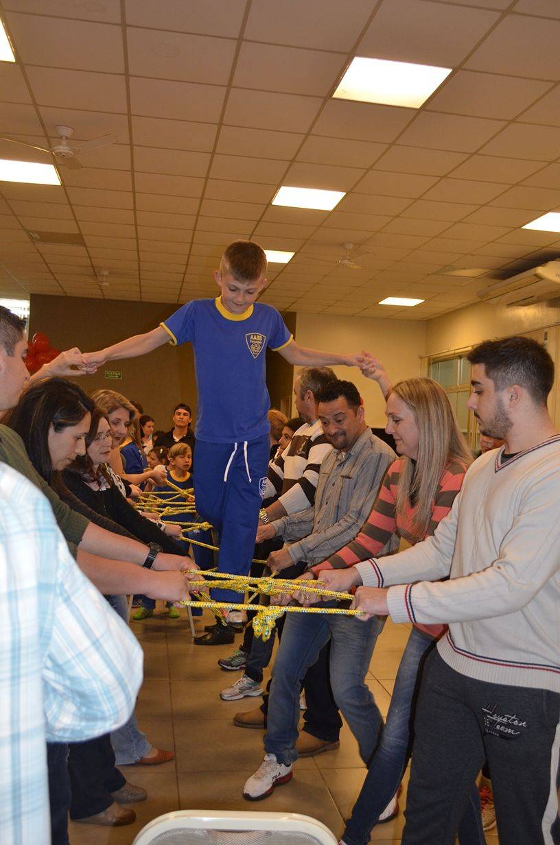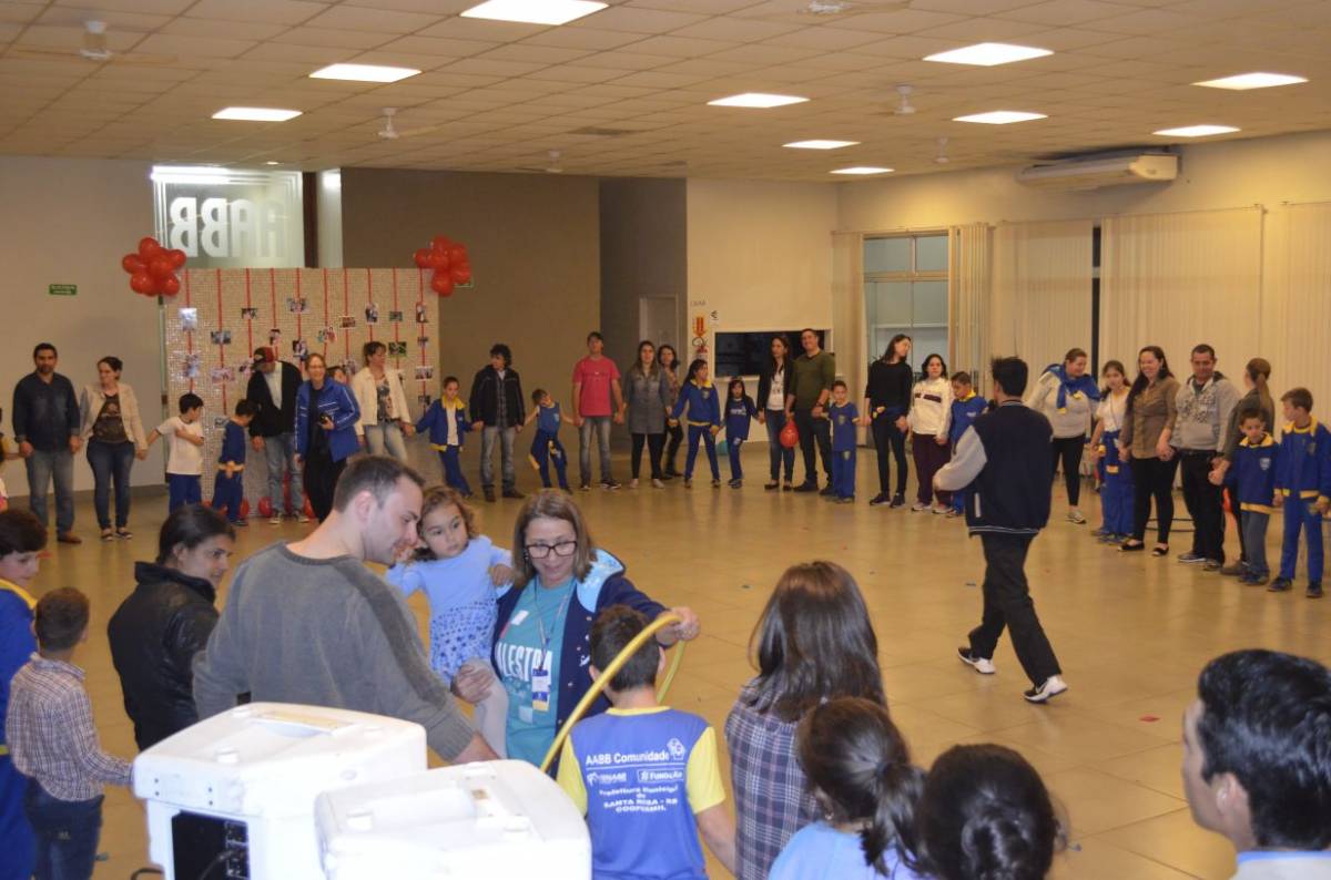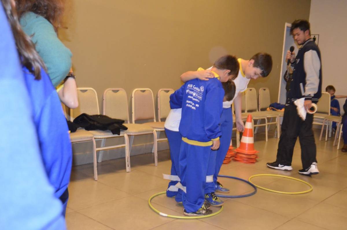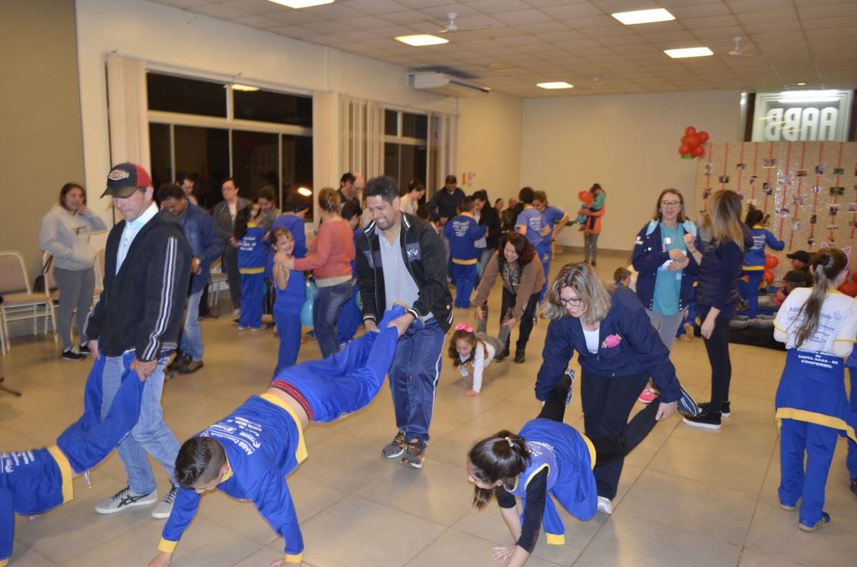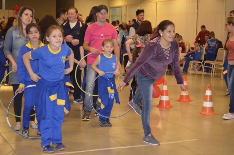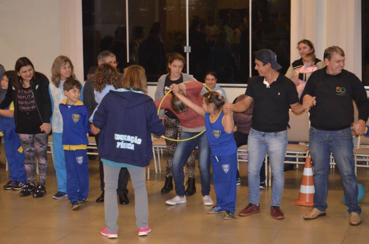 Já na quarta-feira, dia 09, o curso de Educação Física da UNIJUÍ Campus Santa Rosa também realizou atividades de recreação com os alunos do projeto AABB Comunidade. Na oportunidade participaram 190 pessoas de um circuito de atividades cooperativas entre pais e filhos.