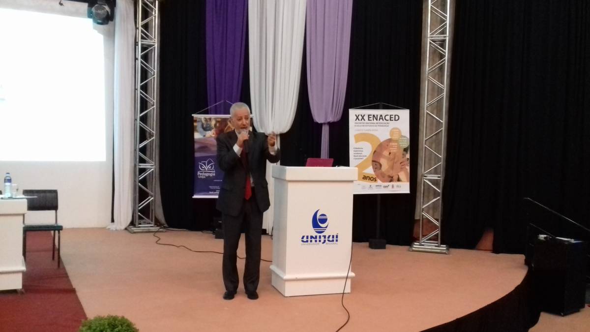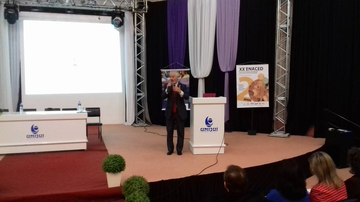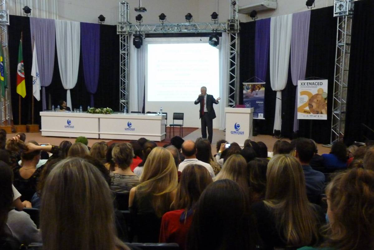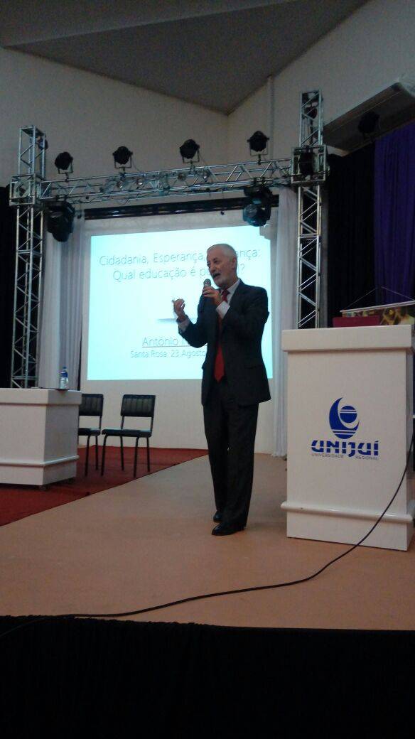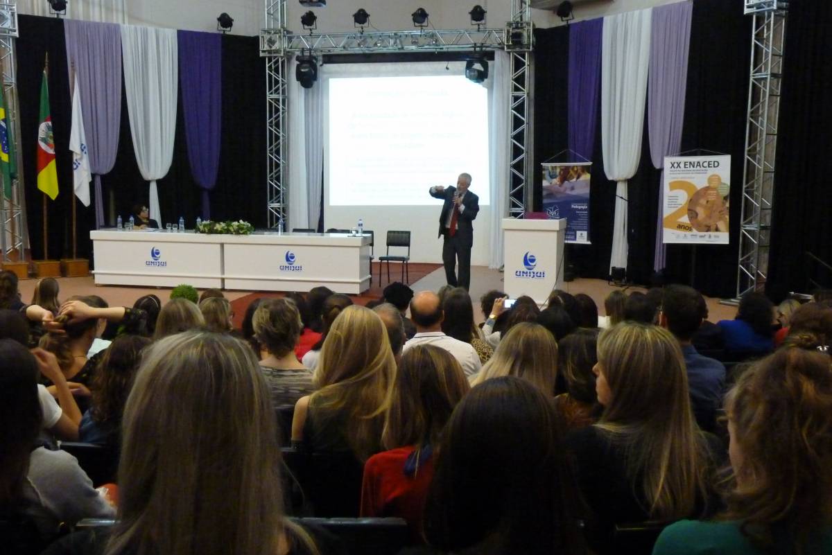 O Encontro Nacional de Educação e Ciclo de Estudos da Pedagogia (Enaced) realizou a abertura oficial da primeira etapa do evento, na noite de quarta-feira, dia 23, no Auditório Central da UNIJUÍ Campus Santa Rosa. Com o auditório lotado, o evento contou com a participação especial do professor catedrático do Instituto de Educação da Universidade de Lisboa (Portugal), Antônio Manuel Seixas Sampaio da Nóvoa.