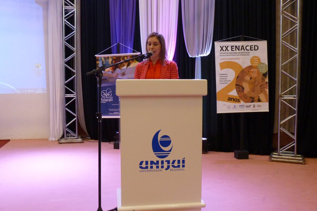 Na oportunidade também participaram da abertura a Vice-Reitora de Graduação, professora Cristina Eliza Pozzobon, Pró-Reitor do Campus Santa Rosa, professor Ariosto Sparemberger, Secretária Municipal da Educação, Lires Zimmermann Führ, Chefe substituta do Departamento de Humanidades e Educação, professora Célia Clarice Atkinson, Coordenadora do Mestrado e Doutorado em Educação nas Ciências, professora Eva Teresinha Oliveira Boff, Vice Diretor do 10º Núcleo do CPERS, José Albino Rohr, Coordenadora do curso de Pedagogia e do XX Enaced, professora Claudia Maria Seger e Coordenadora do XX Enaced, professora Hedi Maria Luft.