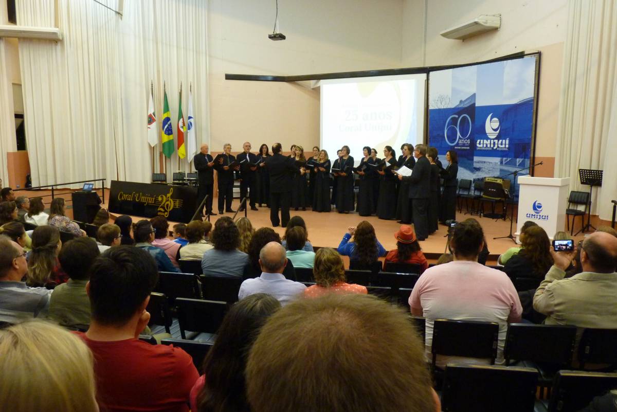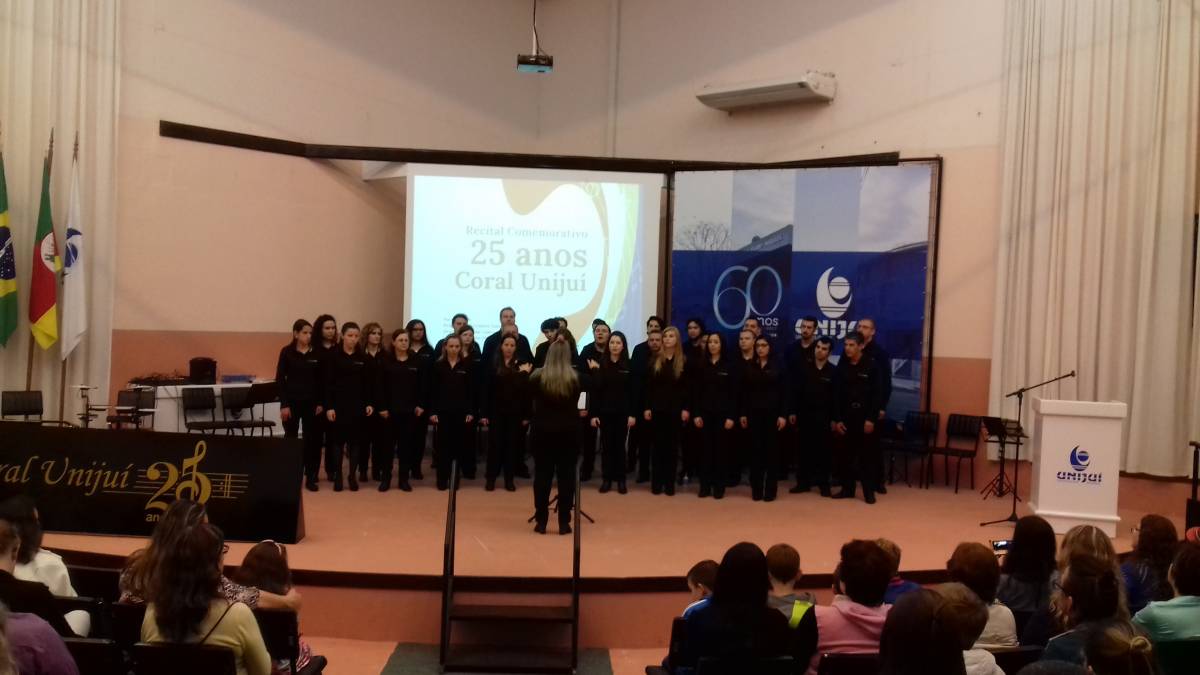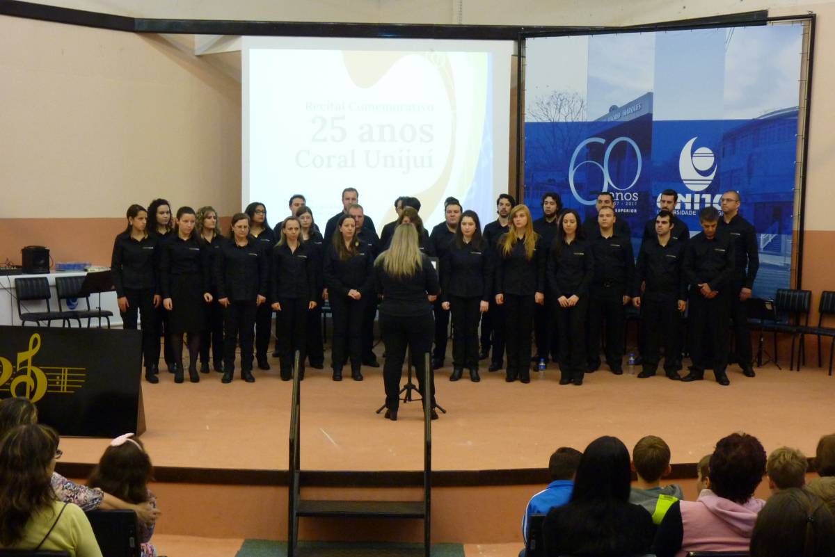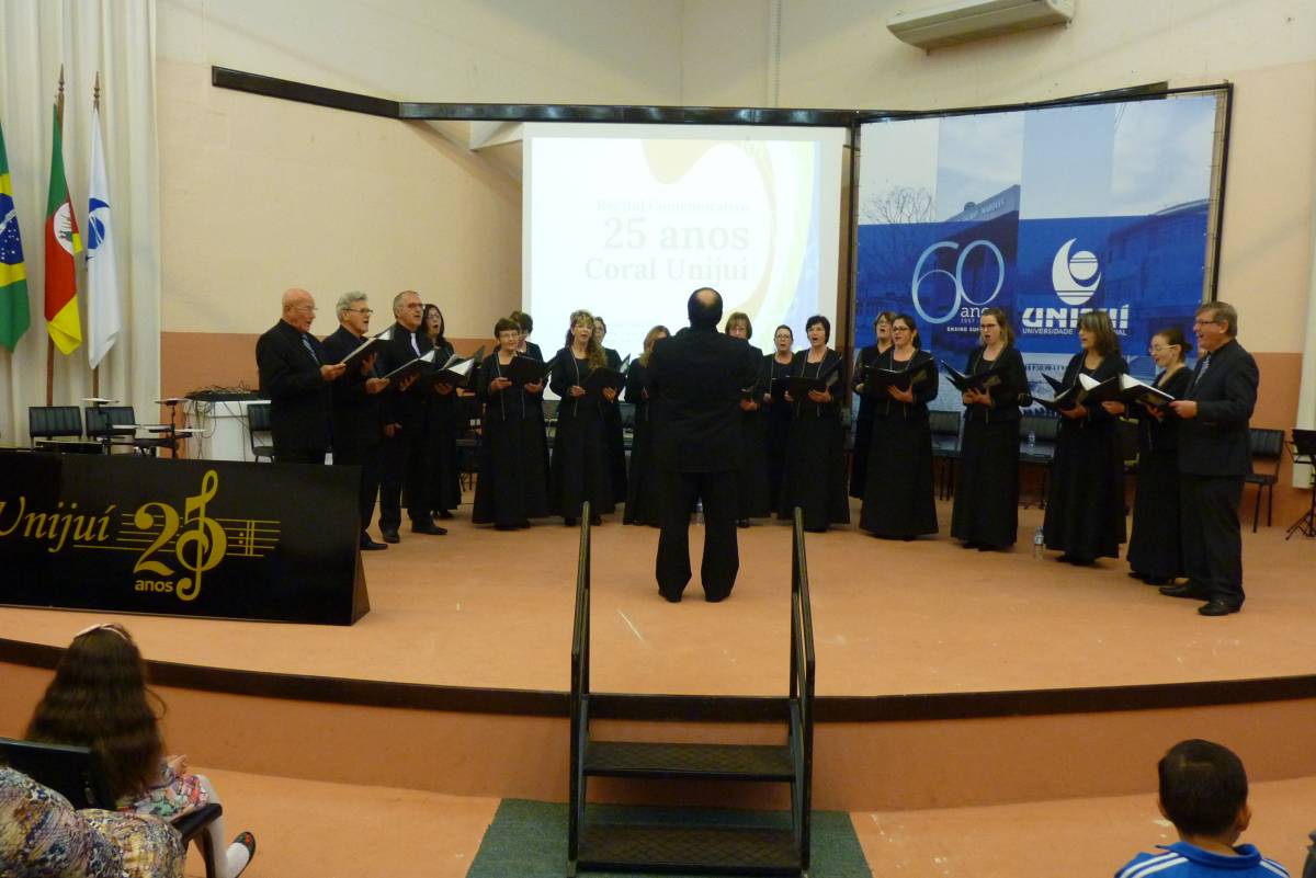 A noite de domingo, dia 27, ficou registrada na história da UNIJUÍ Campus Santa Rosa. O Recital Comemorativo de 25 anos do Coral da UNIJUÍ encantou o público presente, através da história do grupo por meio de suas canções, resgatando músicas antigas de diversos gêneros musicais que marcaram a atuação do Coral, incluindo algumas peças novas e recentes.