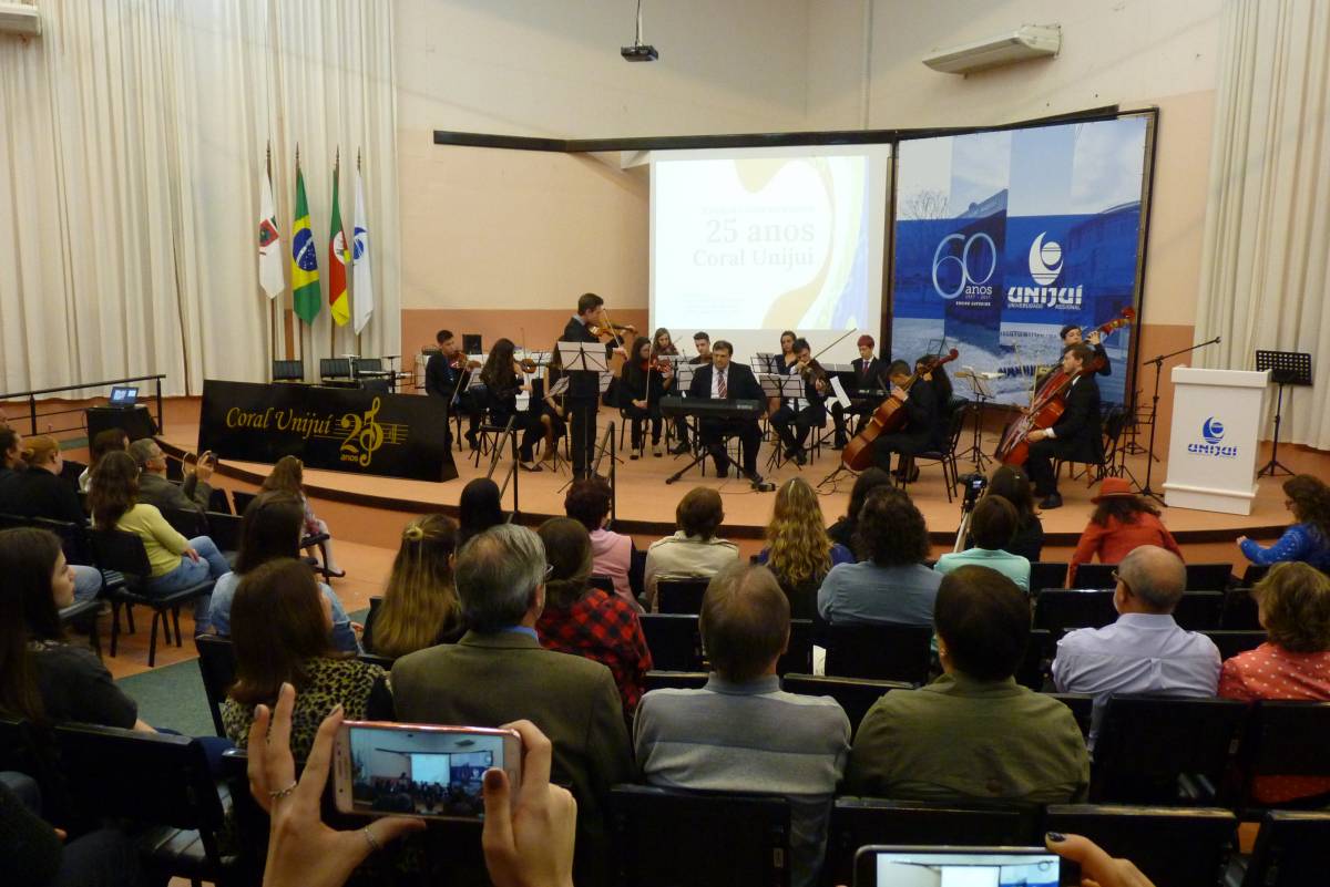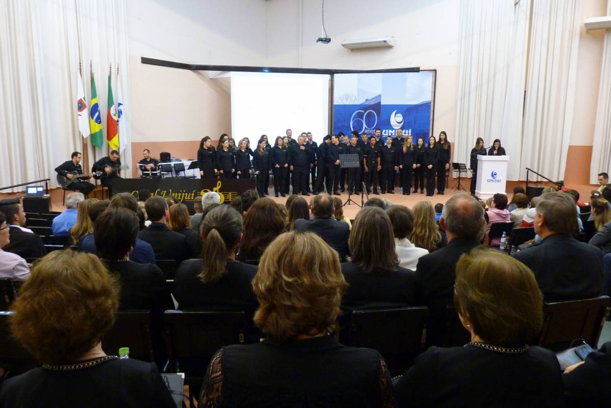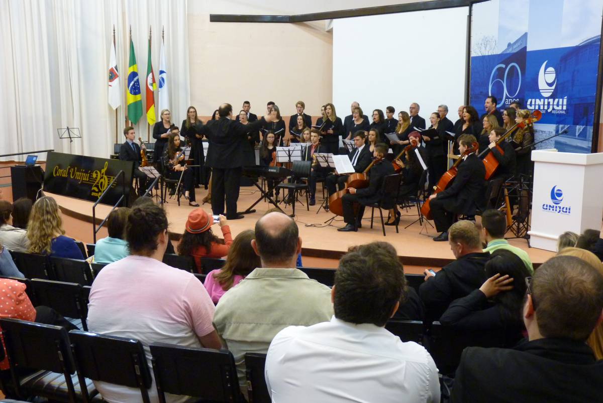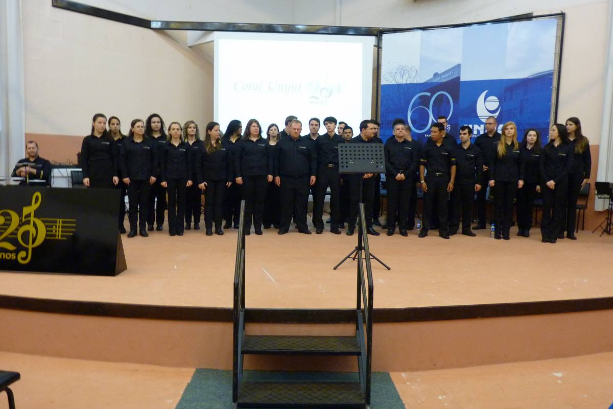 A noite de domingo, dia 27, ficou registrada na história da UNIJUÍ Campus Santa Rosa. O Recital Comemorativo de 25 anos do Coral da UNIJUÍ encantou o público presente, através da história do grupo por meio de suas canções, resgatando músicas antigas de diversos gêneros musicais que marcaram a atuação do Coral, incluindo algumas peças novas e recentes.
