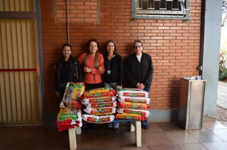 Estiveram presente no ato de entrega de 91 quilos de ração a Presidenta Elizabeth Sperotto e a Tesoureira Dulci Claudete Matte.