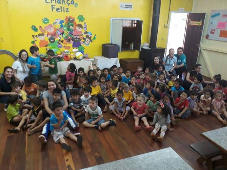 Realizada no Lar Bom Abrigo, localizada no Santana, interior de Ijuí, a atividade envolveu 25 crianças. Os setores proporcionaram atividades com cama elástica; slackline; música para animar; jogamos vôlei, fizemos lanche com pipoca, cachorro-quente, bolo e suco; o Cristian e o Ederson (funcionários surdos) deram uma aula de LIBRAS. No final foram distribuídos kits para colorir e sutiãs para as adolescentes.