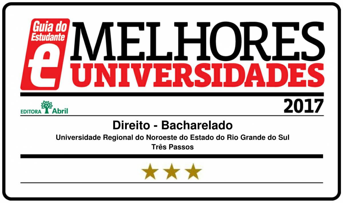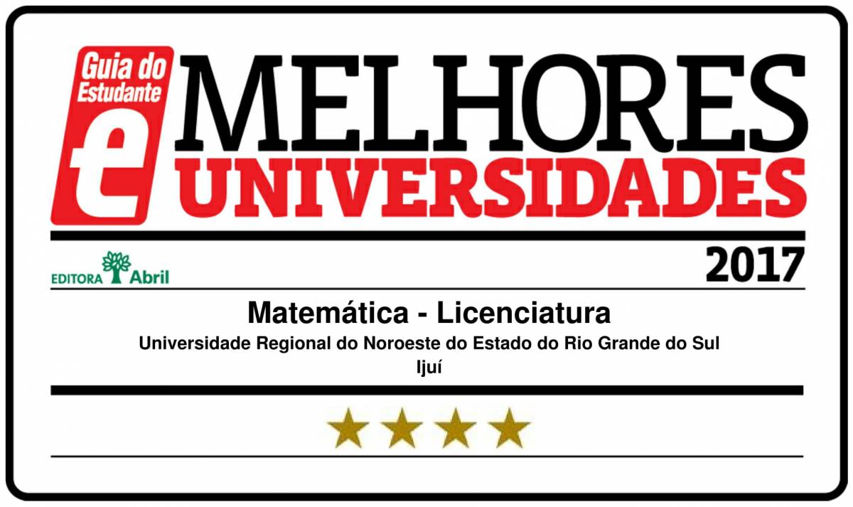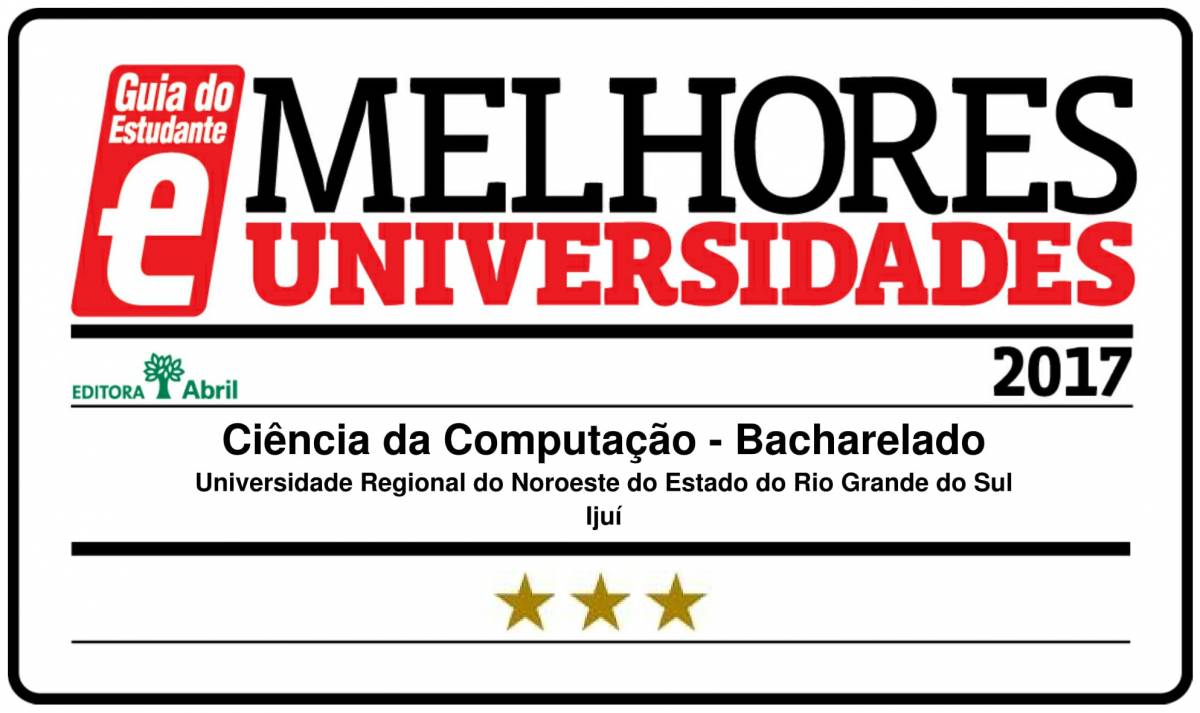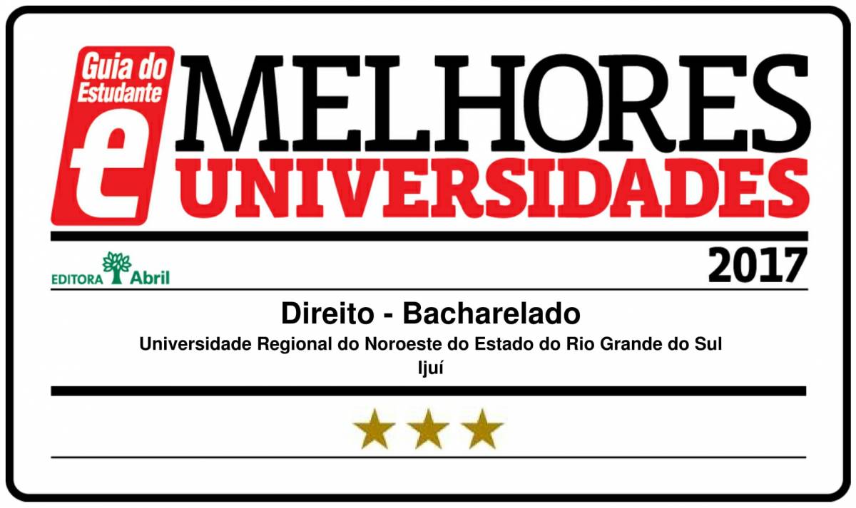 A Editora Abril publicou os resultados do Guia do Estudante Abril 2017 e, como nas últimas edições da avaliação, a Unijuí manteve bons resultados. Foram avaliados 33 cursos nos quatro Campi da Instituição, sendo que oito deles alcançaram a nota 4, em uma escala de 1 a 5, considerado muito bom.