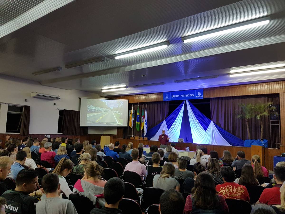 O campus Três Passos tem novidade para o Vestibular de Verão 2018, que estará com inscrições abertas a partir da próxima segunda-feira, dia 02 de outubro. Na noite desta quinta-feira, dia 28, foi lançado, no auditório do Campus, o curso Superior de Tecnologia de Gestão de Recursos Humanos. O evento contou com a presença da comunidade, professores, profissionais e estudantes da Unijuí. O vice-prefeito de Três Passos, Jorge Leandro Dickel, e a Pró-Reitora do campus, professora Fátima Marlise Marroni Rosa Lopes, destacaram a importância do curso para toda a região e a preocupação da Universidade com a comunidade e com o desenvolvimento regional. O evento contou ainda com a palestra “Os desafios da gestão de pessoas no Século 21”, com a professora Adriane Fabrício, doutoranda em Administração com ênfase em Gestão de Pessoas e especialista nesta área.