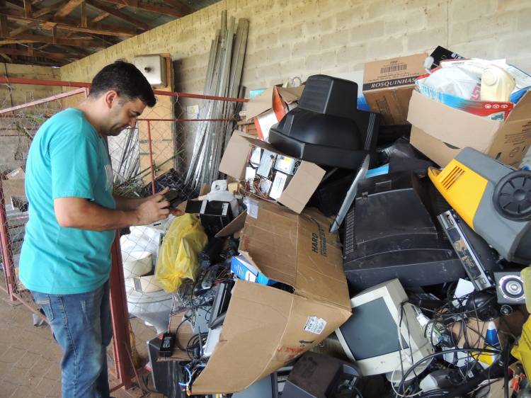 No Depósito Temporário de Resíduos, localizado próximo do Prédio da Coordenadoria Patrimonial, no Campus Ijuí, foram recebidos aparelhos de dvd’s, computadores, televisores, modens, impressoras, scanners, telefones, fios, cabos, entre outros materiais.