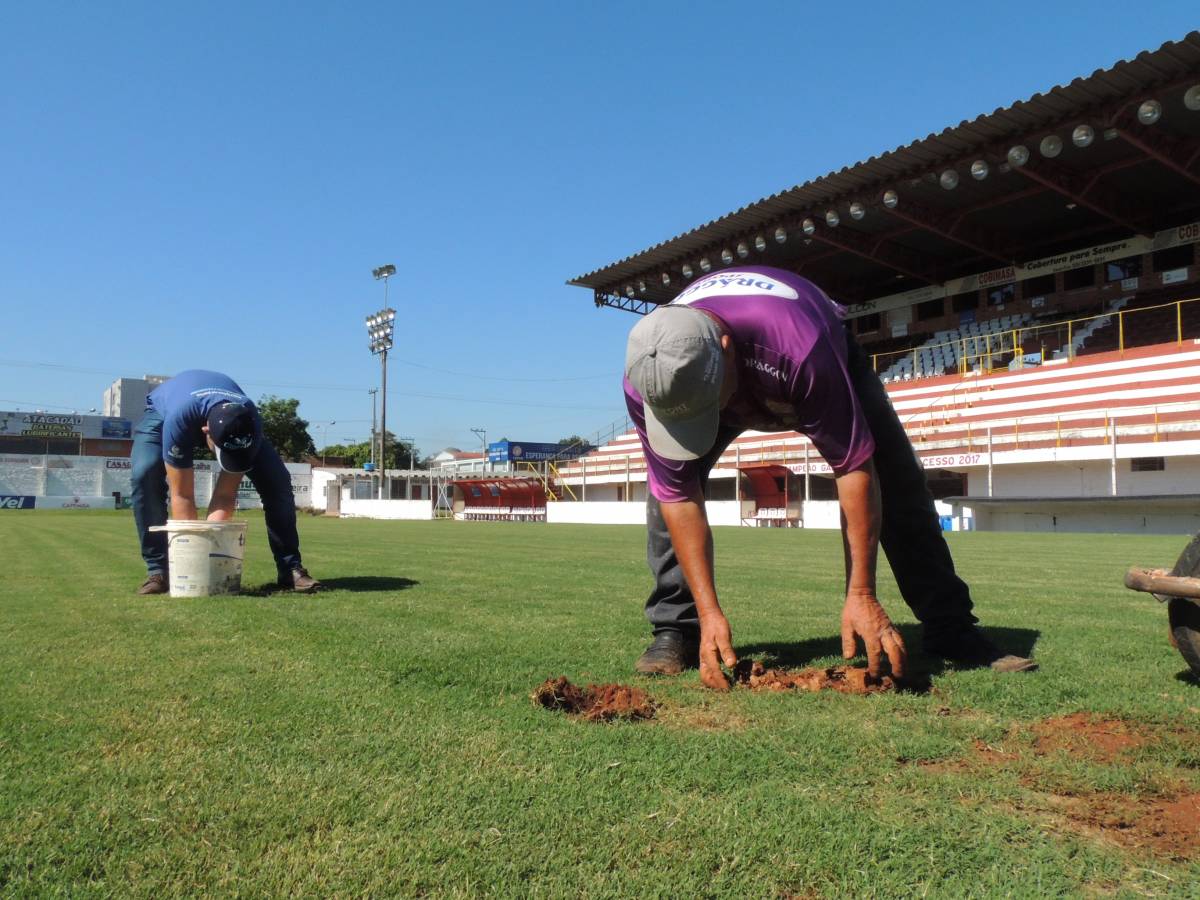 “Fomos chamados pela direção do clube, pois o campo não estava tendo o desenvolvimento que deveria ter. O professor Valmir de Quadros, que tem formação em solos, contribuiu. Fizemos análises e intensificamos o trabalho. Foi uma corrida para ajustar, mas deu tudo certo. Agora é só dar sequência, ajustar algumas falhas e o campo vai ficar cada vez melhor”, observa o professor Emerson, que é especializado em pastagens.