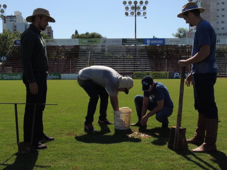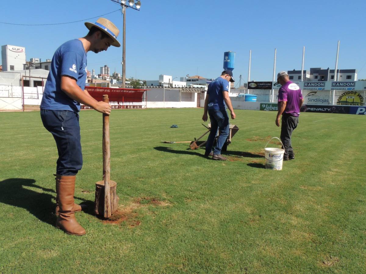 A oportunidade de contribuir para o clube e realizar um trabalho prático motivou alguns estudantes do Departamento de Estudos Agrários, que estão auxiliando voluntariamente nas atividades. “Gosto dessa parte de gramas, forragens, me interesso muito, por isso resolvi ajudar. Também pela oportunidade de praticar”, complementa o estudante de Agronomia Ricardo Schneider.