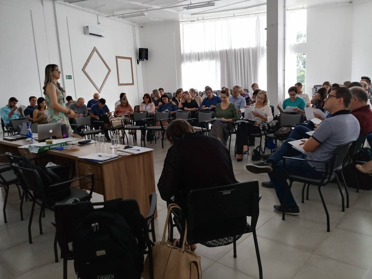 No dia 16 a temática abordada foi “A Gestão de Pessoas”. Na parte da manhã a condução foi feita pela Profa Adriane Fabrício, docente do DACEC, que trouxe conceitos da área e problematizou situações que os gestores se deparam no seu dia a dia. Os coordenadores de curso de graduação também participaram desse turno de formação. Na parte da tarde, o Gerente de Recursos Humanos conduziu a formação a partir das políticas de gestão de pessoas na UNIJUÍ, focando também na gestão dos tempos docentes, de técnicos-administrativos e de apoio, bem como o e-Social.