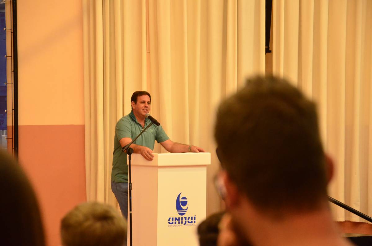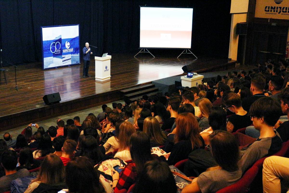 Durante o evento, também puderam prestigiar a palestra que tratou a temática “Sou Universitário”. No Campus Ijuí foi ministrada pelo chefe do Departamento de Ciências Jurídicas e Sociais, professor Joaquim Henrique Gatto e no Campus Santa Rosa pelo chefe do Departamento de Ciências Exatas e Engenharias, professor Maurício de Campos.