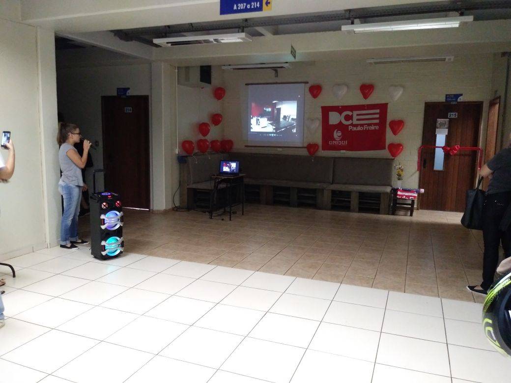 O DCE realizou na noite de quinta-feira, dia 08, uma programação especial alusiva ao Dia da Mulher. Na oportunidade os estudantes participaram no primeiro momento da reinauguração da sala do Diretório Central totalmente reformada e em seguida prestigiaram a atividade cultural que contou com a participação do músico Fróes e das acadêmicas de Psicologia Suzana Castro e Laura Malaquias.