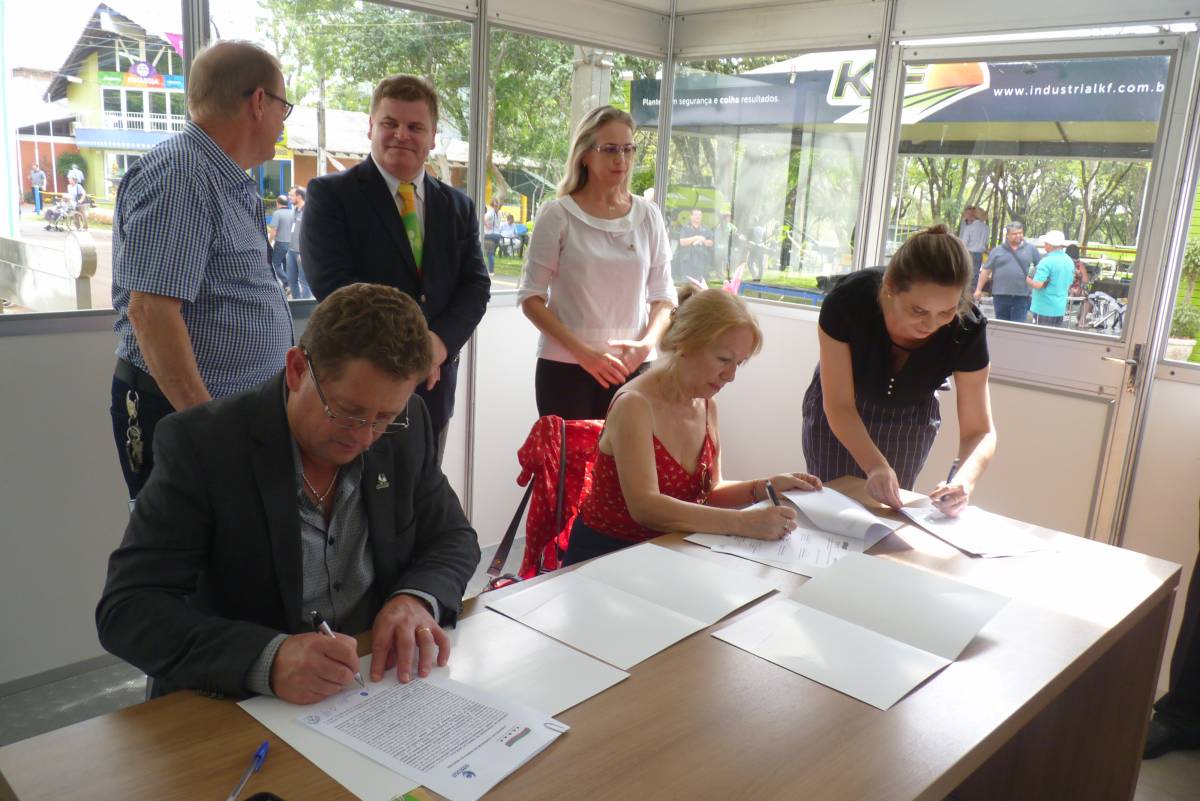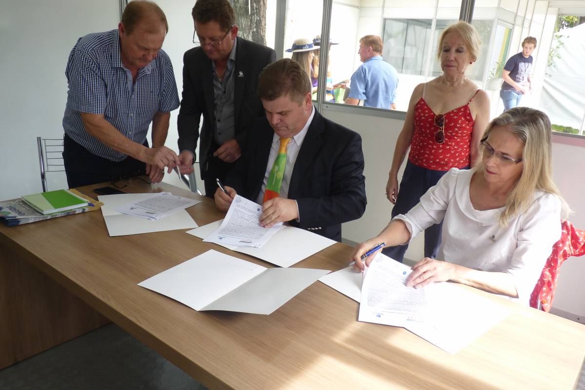 Durante a tarde de sexta-feira, dia 27, também ocorreu a assinatura do convênio entre a UNIJUÍ e a Federação Econômica Brasil, Argentina e Paraguai (Febap), na oportunidade a Reitoria participou do ato.