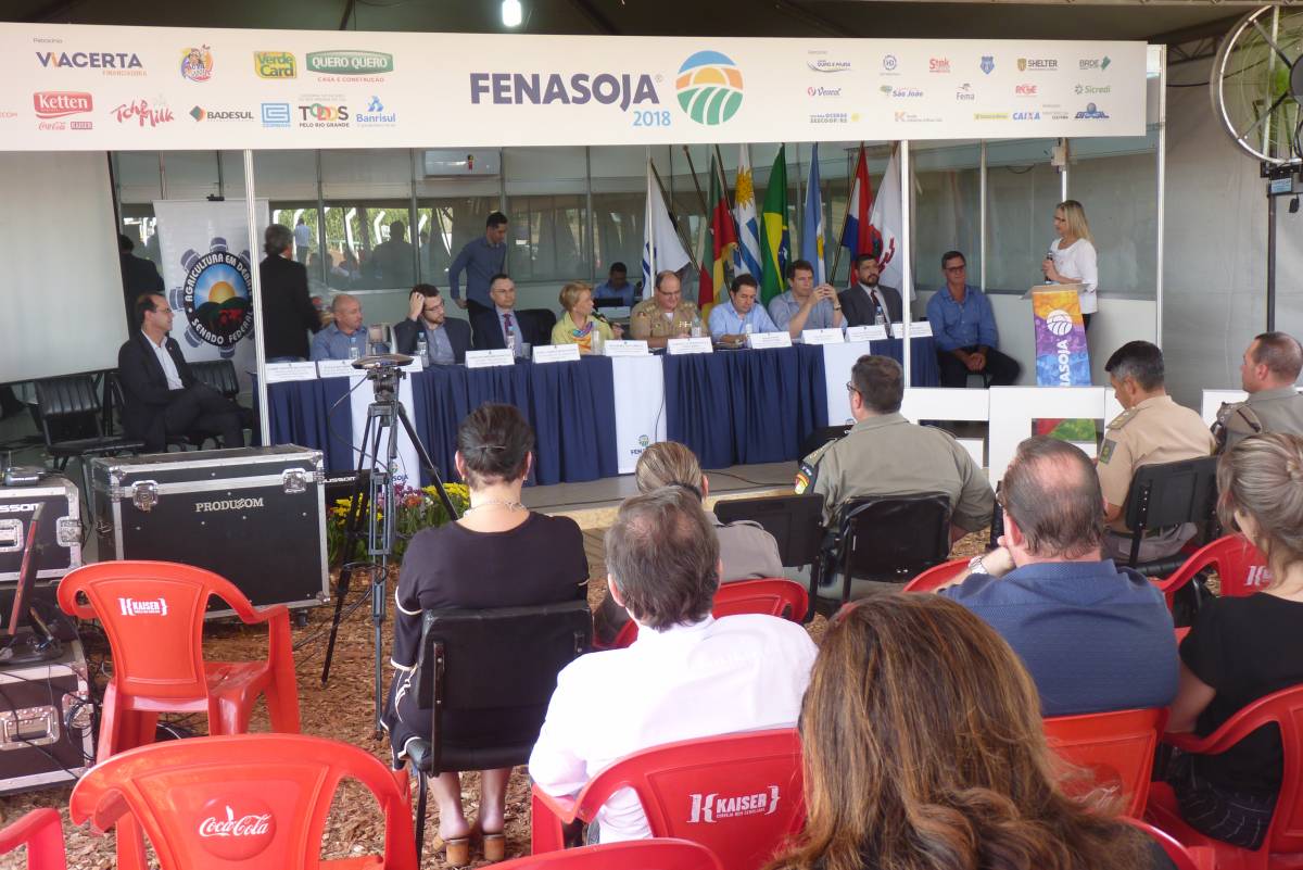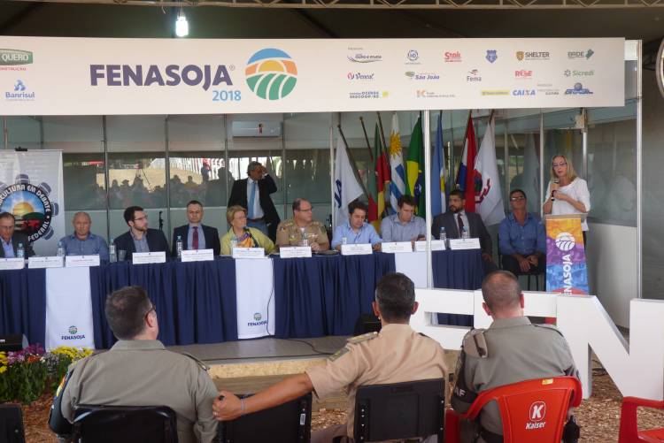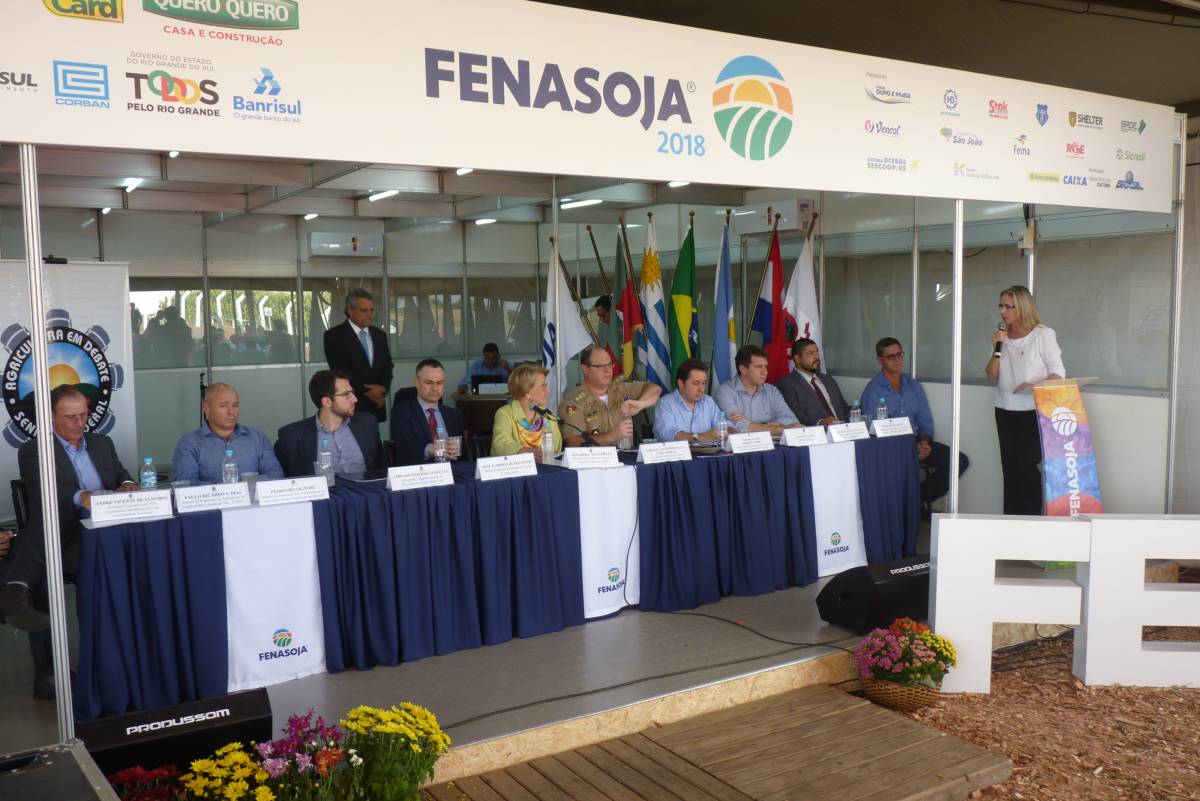 A Feira Nacional da Soja (Fenasoja) teve início na sexta-feira, dia 27, em Santa Rosa. Na oportunidade a Reitoria da UNIJUÍ representada pela Reitora, professora Cátia Maria Nehring, Vice-Reitora de Graduação, professora Cristina Eliza Pozzobon, Pró-reitor do Campus Santa Rosa, professor Ariosto Sparemberger e pelo Gerente de Marketing, Giancarlo Bottega participaram da Audiência Pública pautada na Segurança no Campo e os desafios para a produção, que foi organizada pela Comissão de Agricultura do Senado e Fenasoja.