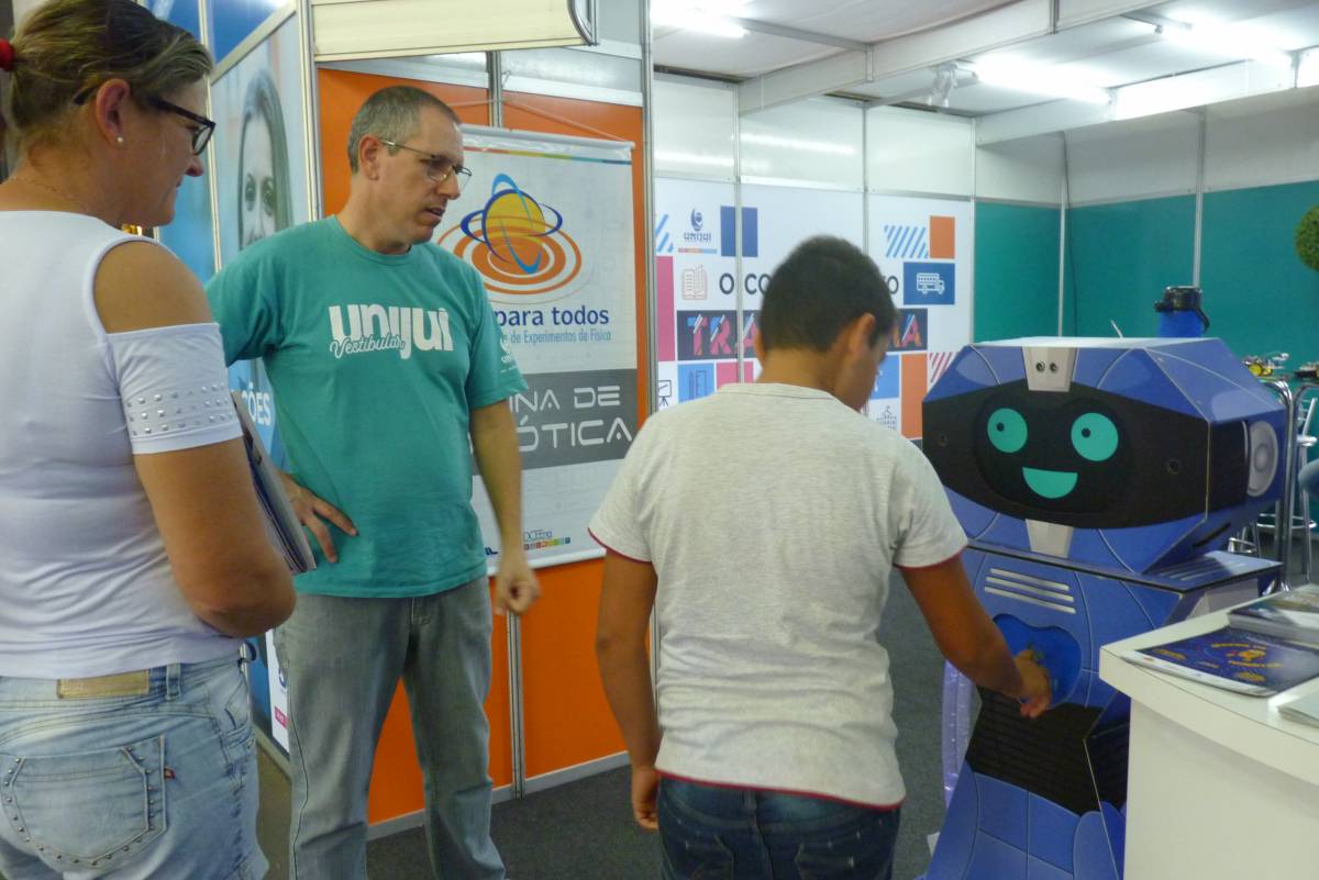 A UNIJUÍ também esteve realizando diversas ações no estande da Universidade. O curso de Engenharia Elétrica realizou atividades com o robô nos dias 02 e 03 de maio. O robô possui tecnologia capaz de reconhecer faces, conversar com pessoas e ser operacionalizado a uma distância de até 600 metros. A tecnologia está circulando pela Fenasoja.