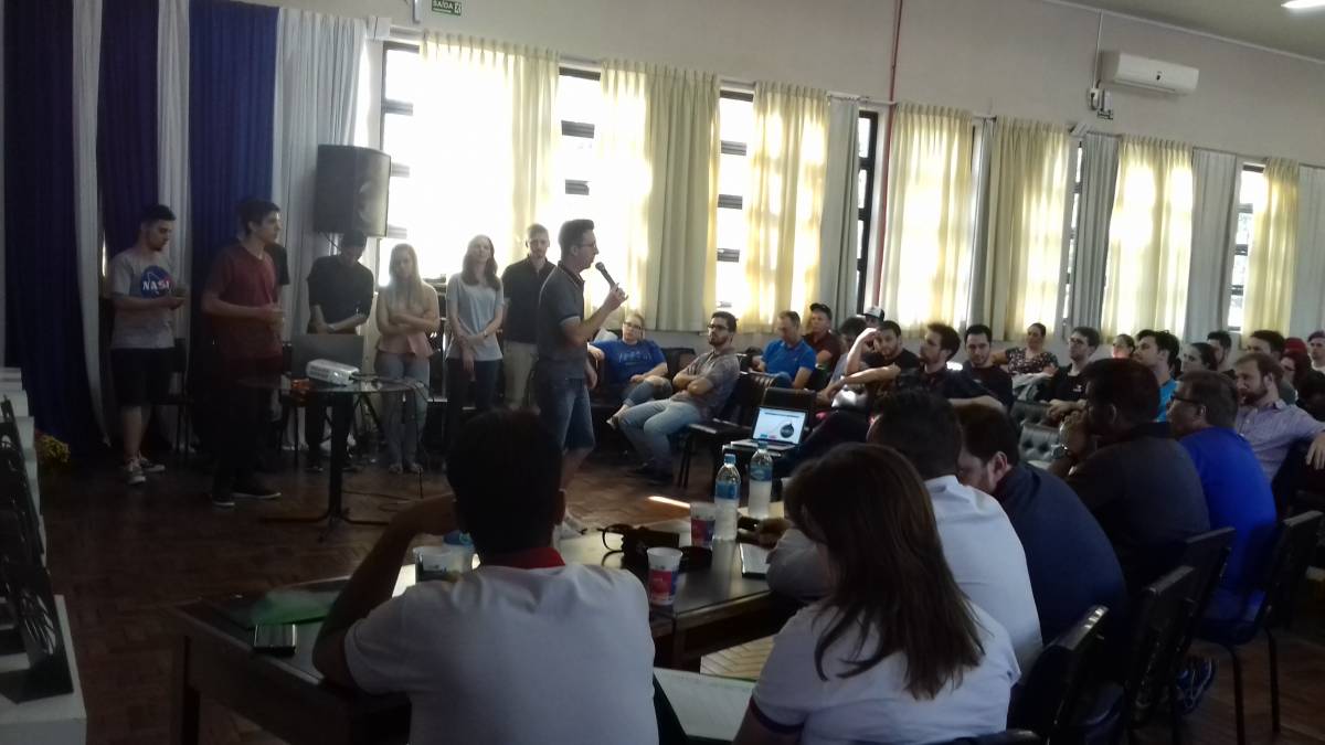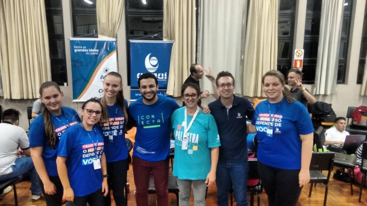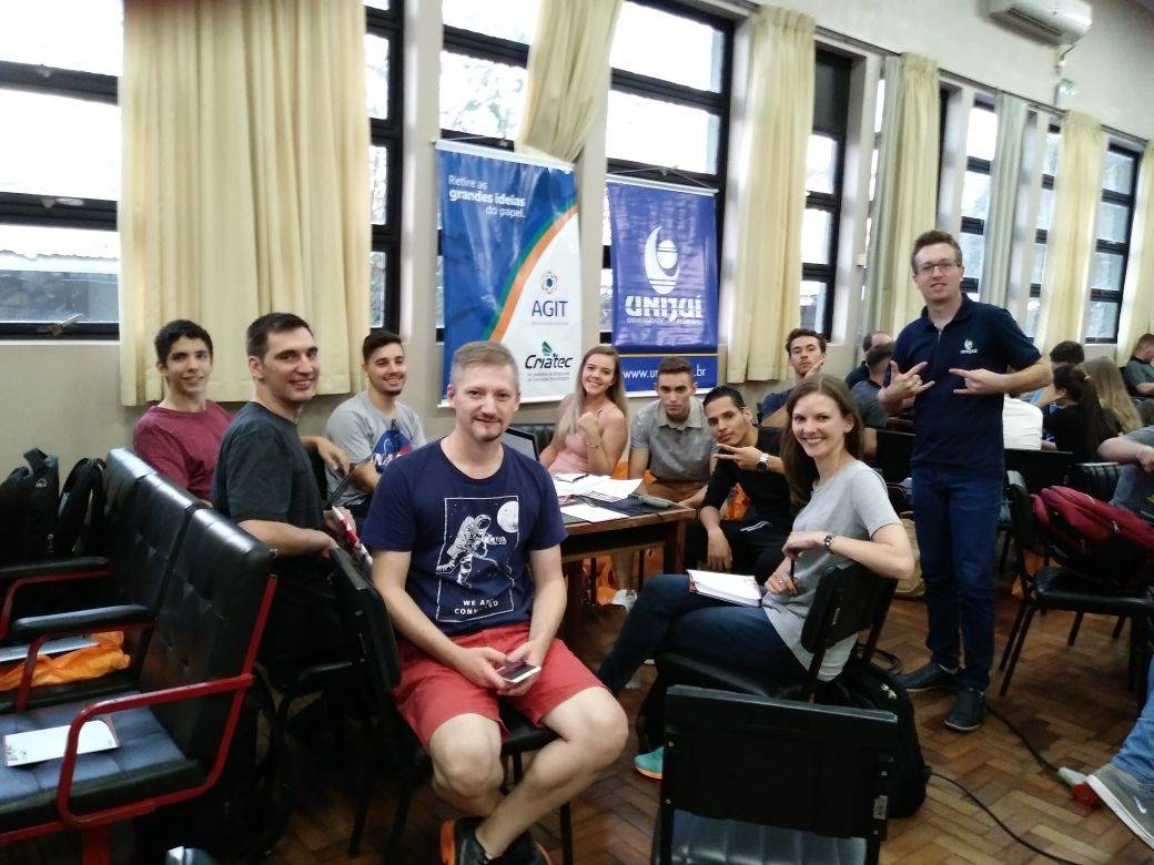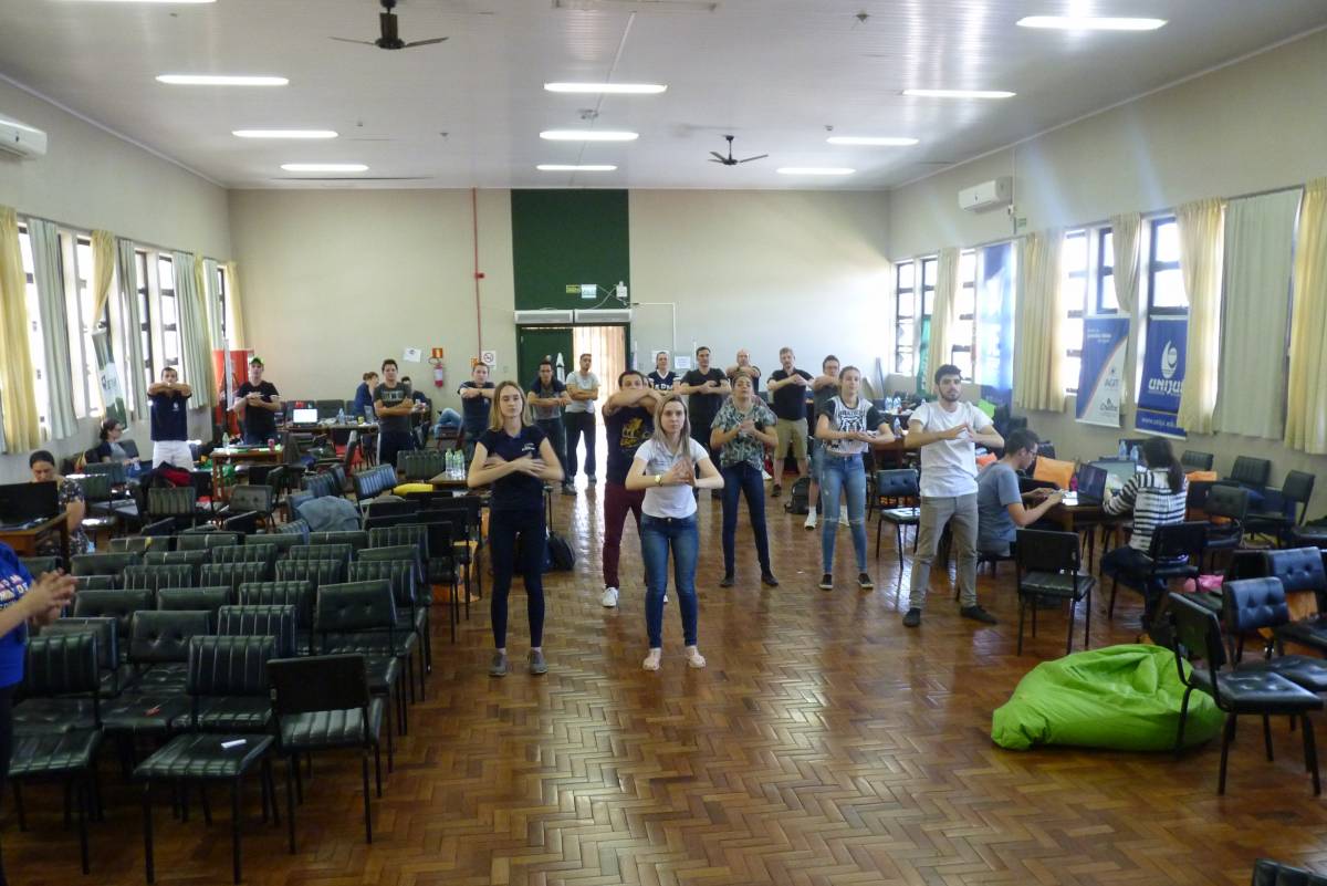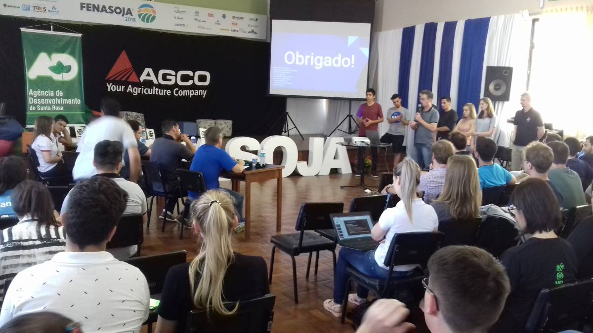 A UNIJUÍ também participou do Hackathon Agro, no final de semana, durante a programação da Fenasoja 2018. Foram 24 horas de muito trabalho, pesquisa e dedicação. O foco era a resolução de problemas referentes ao agronegócio. Além da equipe de competidores da Universidade, o curso de Educação Física do campus Santa Rosa realizou aula laboral com os 150 participantes.