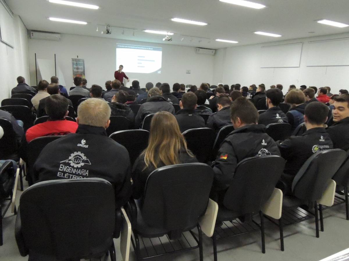 Já em Panambi, o curso de Engenharia Mecânica trouxe palestras sobre temas como: Soldagem na era da Manufatura Avançada, Indústria 4.0, Responsabilidades jurídicas e desafios aos egressos, e também os Desafios da profissão.