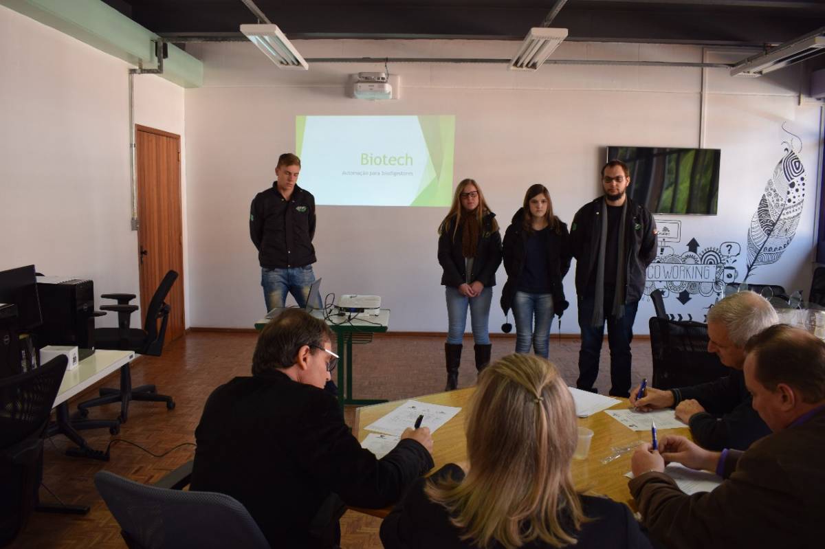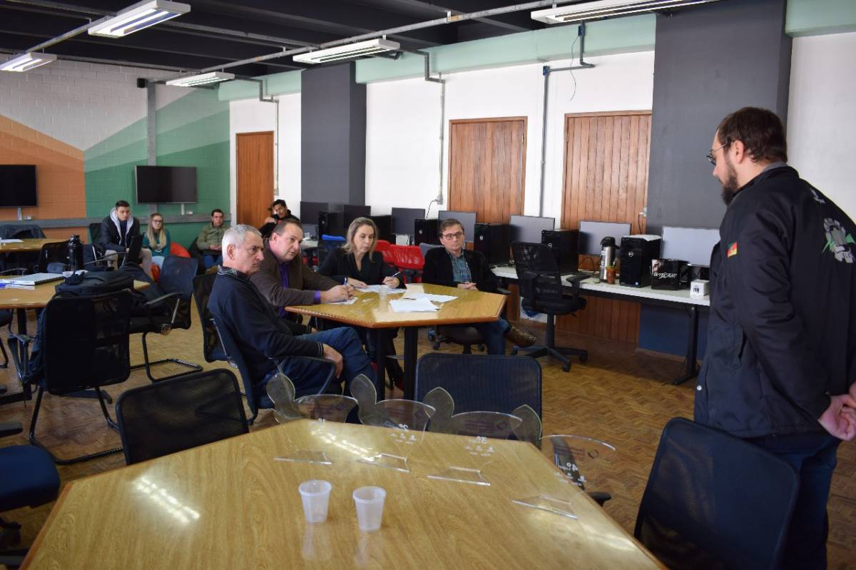A banca avaliadora contou com a participação da Vice-Reitora de Graduação, professora Cristina Eliza Pozzobon, Pró-Reitor do Campus Santa Rosa, professor Ariosto Sparemberger, o gerente da Agência de Inovação e Tecnologia da UNIJUÍ (AGIT), Luís Juliani e o Gerente do Marketing, Giancarlo Bottega.