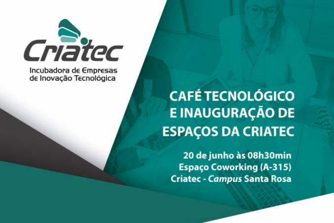 Após vários meses de trabalho e planejamento a Incubadora de Empresas de Inovação Tecnológica (CRIATEC) da UNIJUÍ, estará realizando a inauguração de três espaços, que irão proporcionar ambientes inovadores para soluções criativas, qualificação empreendedora e desenvolvimento de protótipos. O evento será realizado na próxima quarta-feira, dia 20 de junho, durante o Café Tecnológico, no Espaço Coworking, no Campus Santa Rosa.