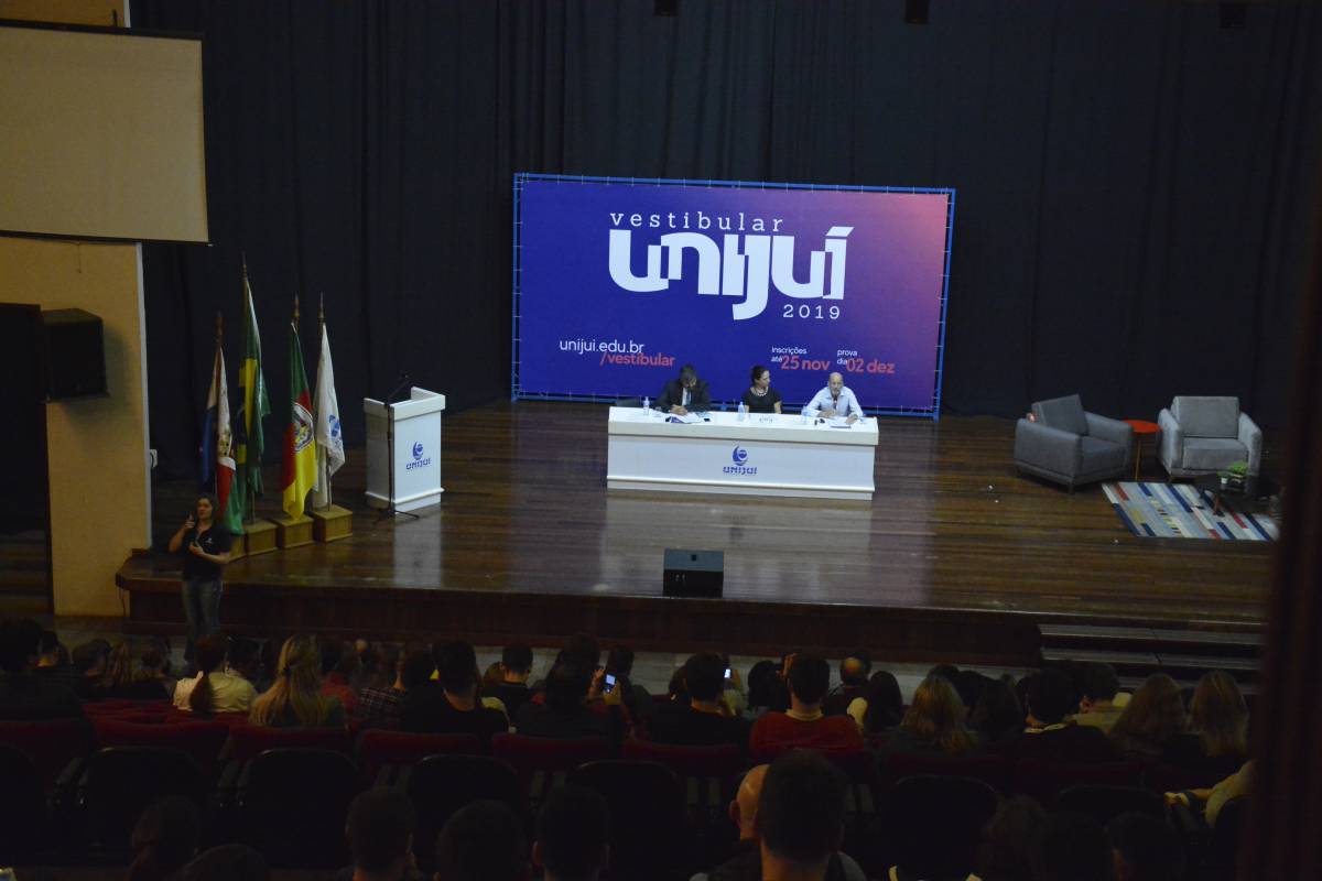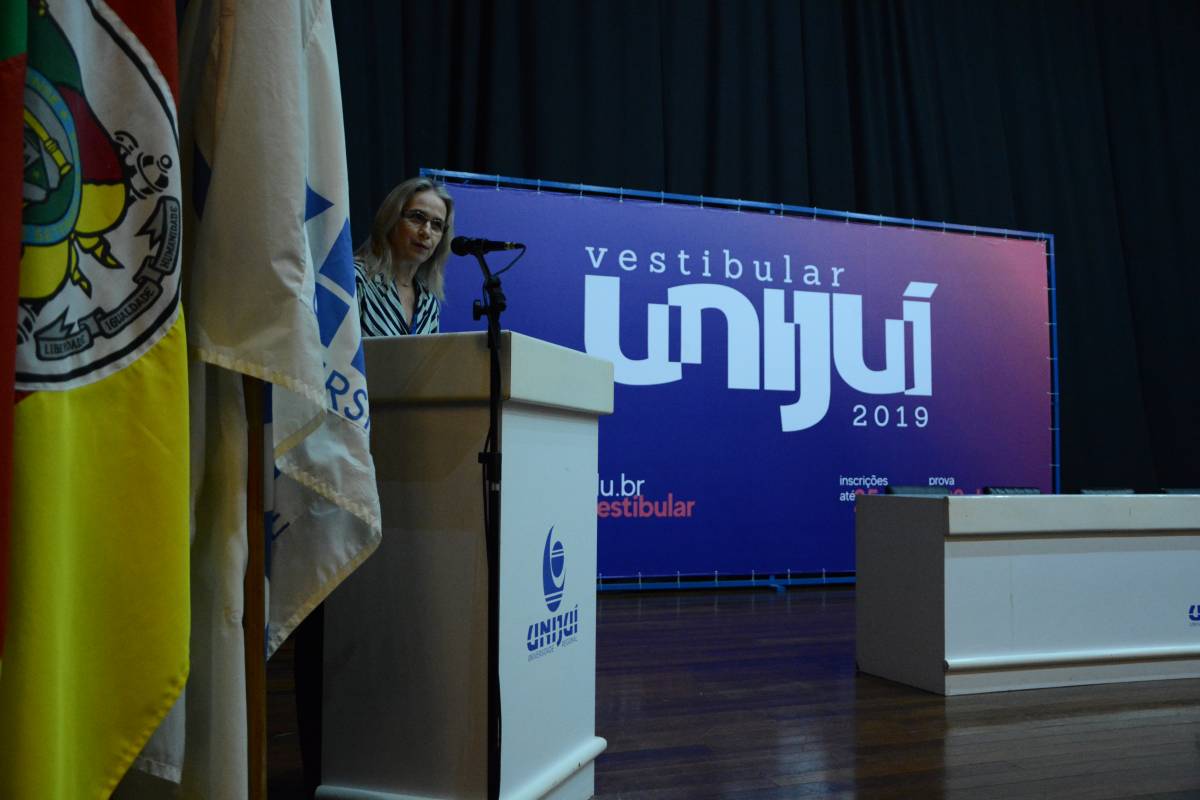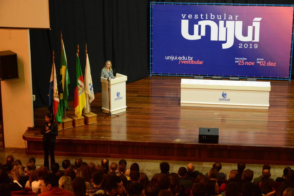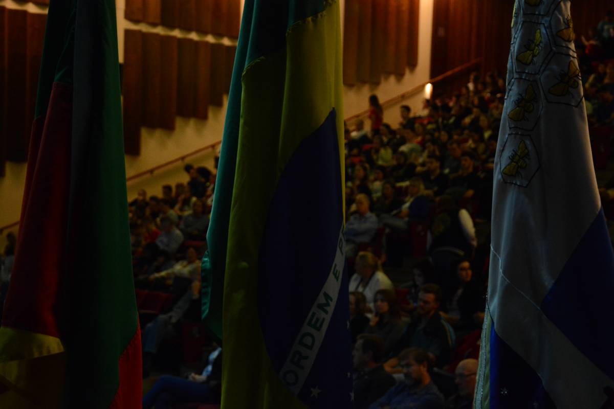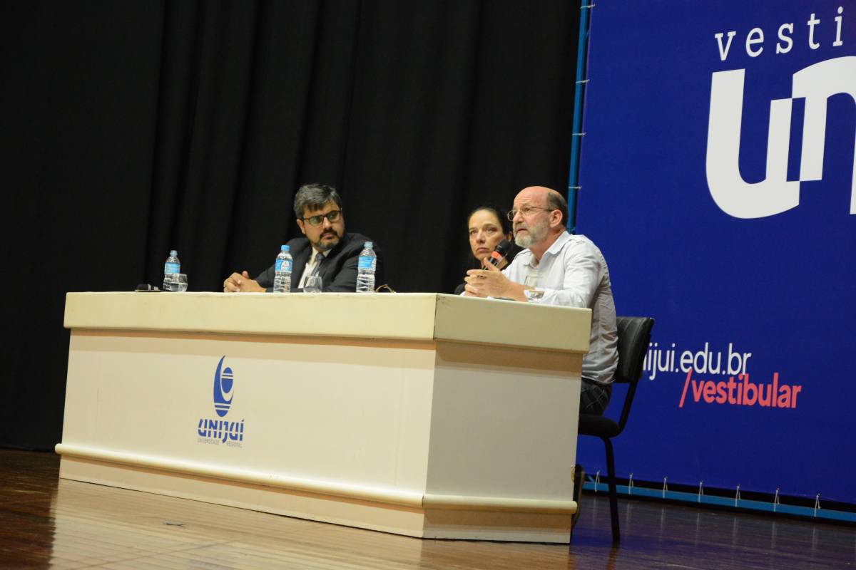 O Salão de Atos Argemiro Jacob Brum esteve lotado para esta atividade inicial. A professora Cátia Maria Nehring, Reitora da Unijuí, realizou a saudação de abertura do Salão do Conhecimento. Logo após, teve início o painel com a discussão do tema central.