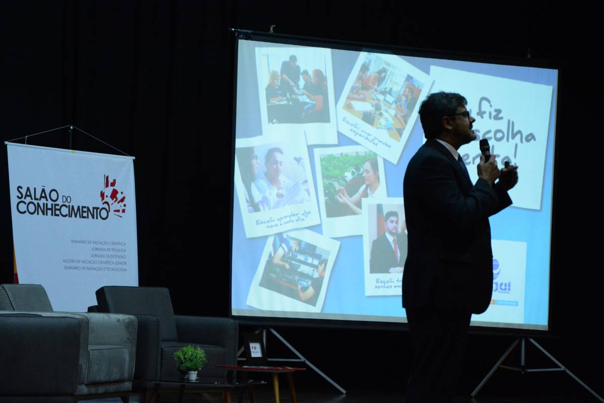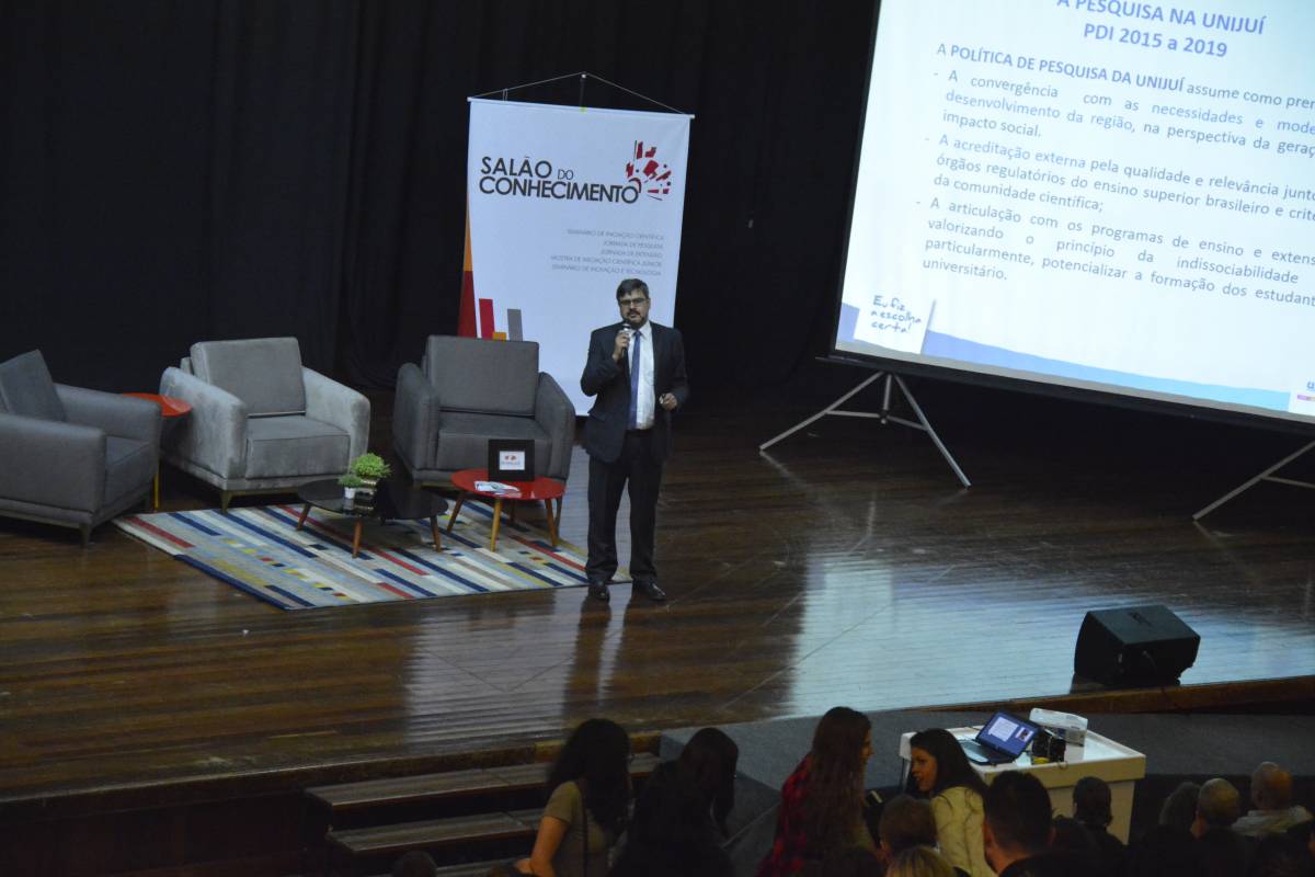 O Vice-Reitor de Pós-Graduação, Pesquisa e Extensão da Unijuí, Fernando González, foi o primeiro a falar. Ele tratou sobre a importância do Salão do Conhecimento, evento agregador de tudo que é produzido na Universidade. Também observou sobre a importância da pesquisa e da extensão para a região, ressaltando os Programas e Projetos que a Unijuí desenvolve. Por fim, frisou sobre a importância de os estudantes se envolverem com atividades para além do ensino. “A Universidade oferece muito mais do que qualquer outra instituição de ensino superior na região”, ressaltou.