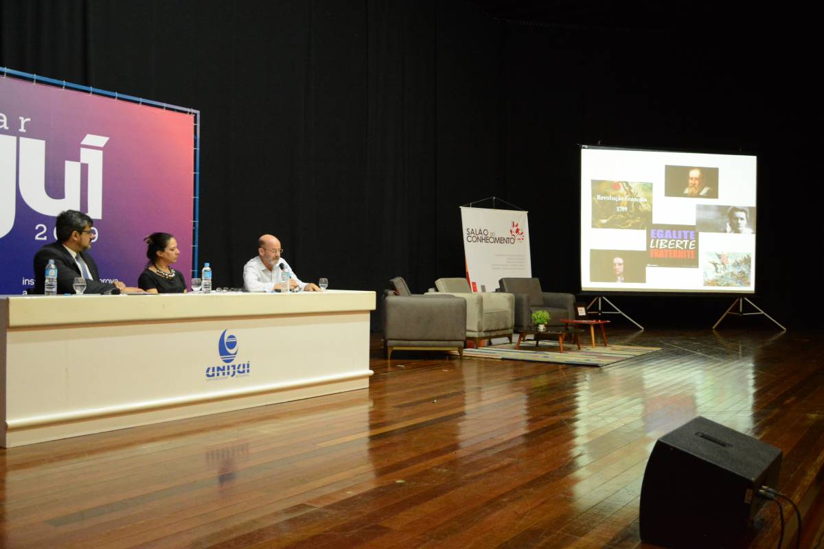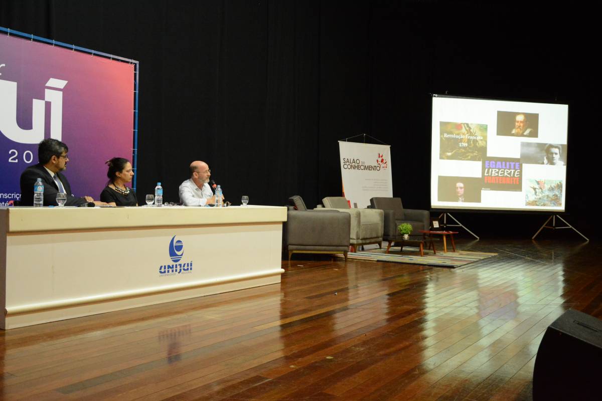 Teve início nesta segunda-feira, dia 01, a edição 2018 do Salão do Conhecimento. Para a abertura oficial, os participantes assistiram ao Painel “Ciência para Redução das Desigualdades”. A discussão, que também é o tema norteador de todo o evento, foi encabeçada por Nadia May Ibias, Coordenadora dos Programas de Parques Tecnológicos e Incubadoras da Secretaria de Desenvolvimento Econômico, Ciência e Tecnologia do Estado, pelo professor Paulo Fensterseifer (DHE/PPG em Educação nas Ciências Unijuí) e pelo Vice-Reitor de Pós-Graduação, Pesquisa e Extensão da Unijuí, Fernando González.