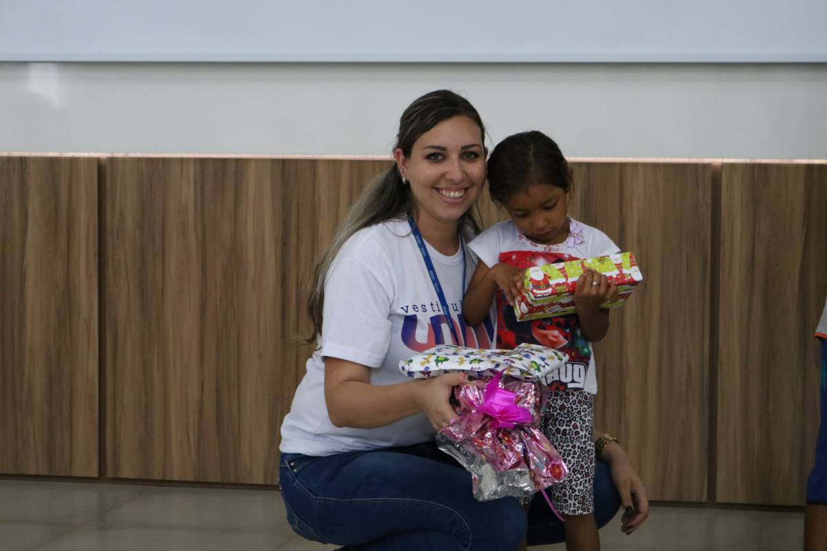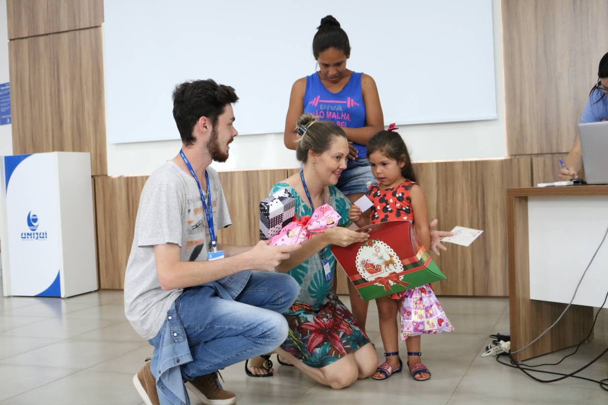 No total foram 28 crianças beneficiadas com o envolvimento dos setores administrativos da instituição que integram o Programa Sinergia. Cada setor adotou uma cartinha com pedidos de presente de natal das crianças. A entrega foi feita neste dia. Além disso, o Núcleo de Eventos do curso de Educação Física da Unijuí desenvolveu, na oportunidade, atividades recreativas com as crianças e técnicos-administrativos da Unijuí.