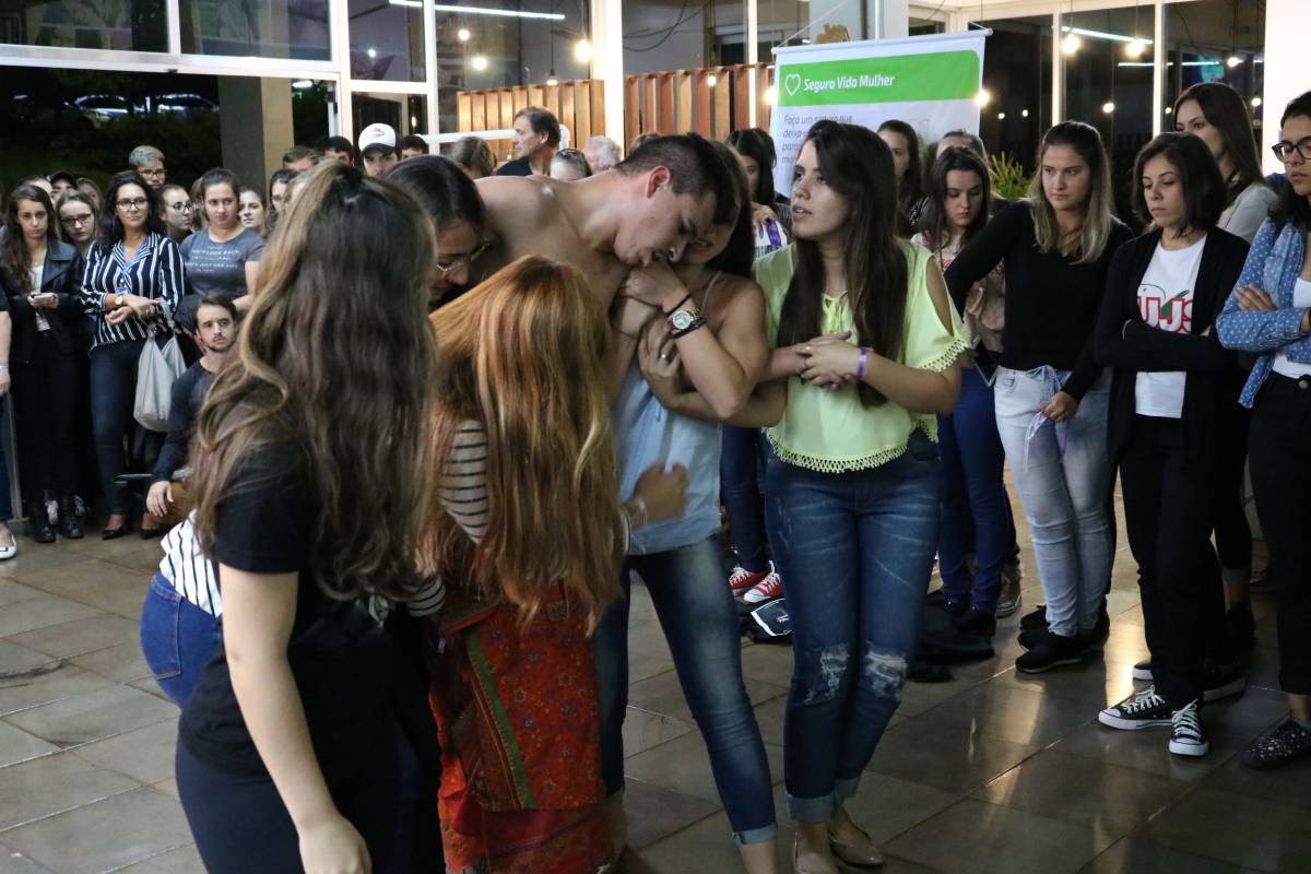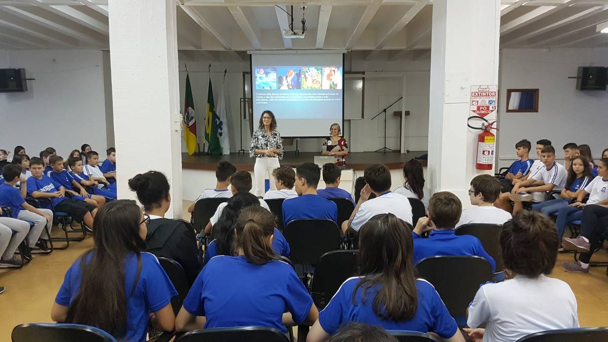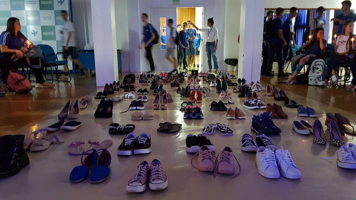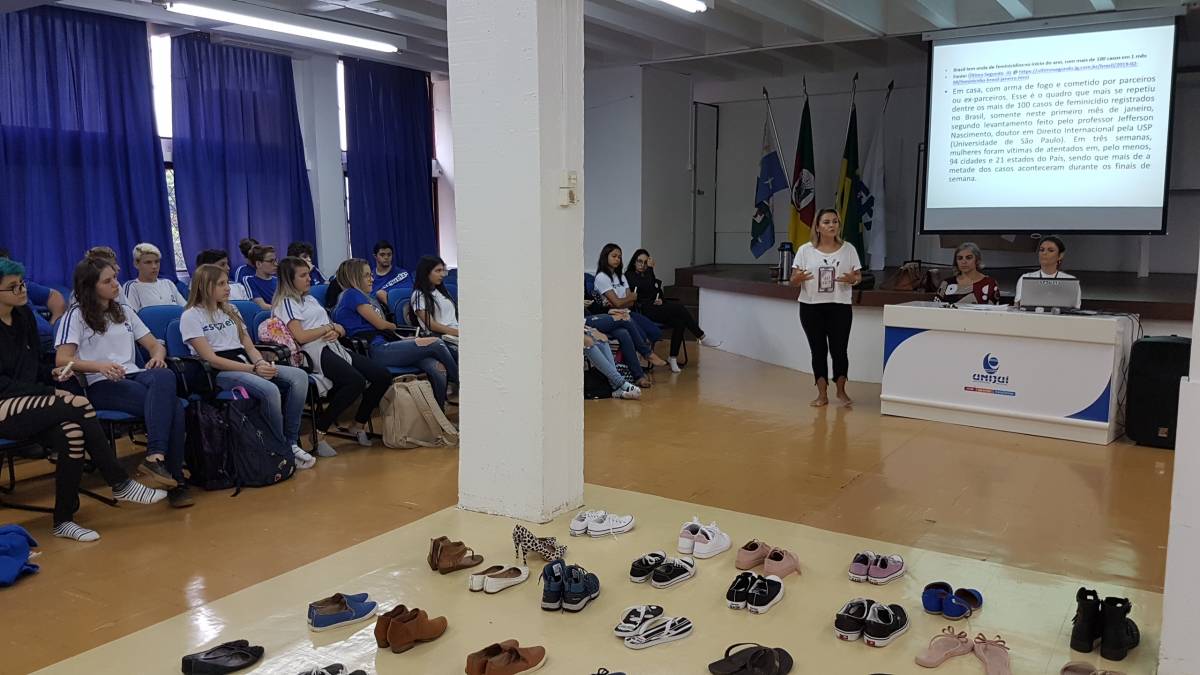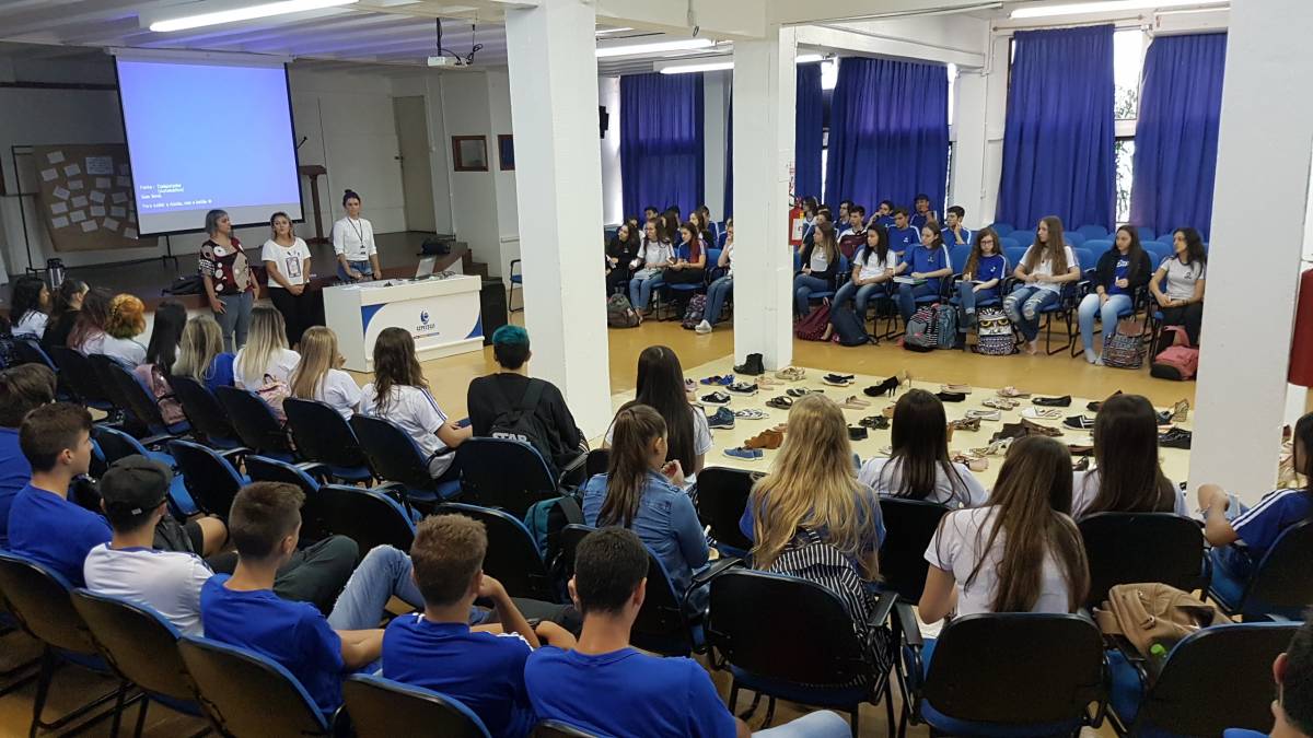 Já o grupo de alunos do Ensino Médio foi recebido e convidado para uma séria reflexão: foram colocados 140 pares de calçados no auditório da Escola, representando o número de mulheres assassinadas até esse momento em 2019 no país. Em seguida, foram convidados a refletirem sobre a violência contra a mulher, o machismo, o silenciamento das mulheres escritoras, bem como sobre o empoderamento feminino, tendo em vista a importância das ainda frágeis conquistas e do reconhecimento do fundamental papel da mulher na sociedade. A atividade foi organizada pelas professoras Anamaria Moreira, Sandra Nunes e Eliana Biolchi.