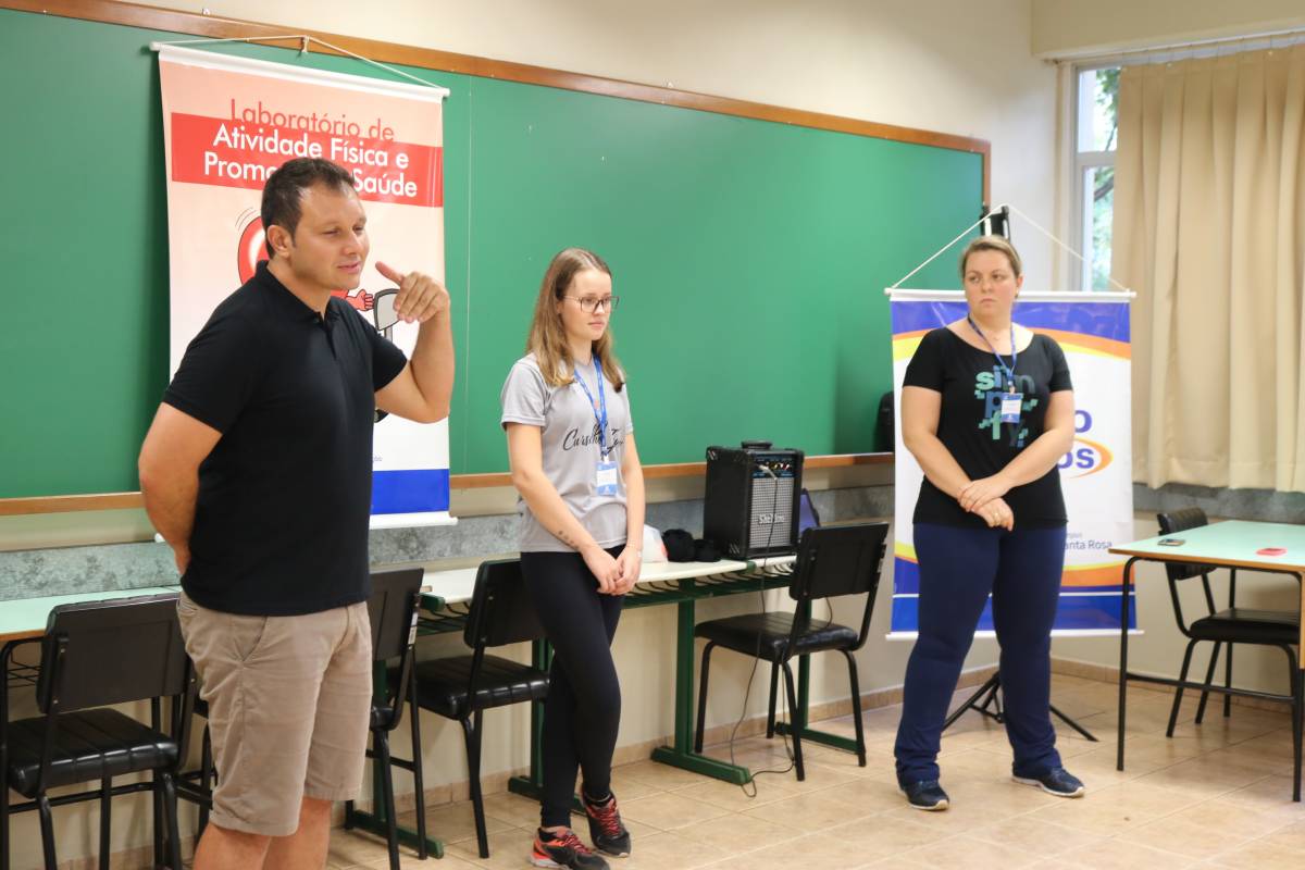 No Campus Santa Rosa, no turno da tarde, foi realizada a atividade “Mulher, Integração e práticas corporais”, com o objetivo de realizar uma integração entre as mulheres que atuam no Campus, através de práticas corporais alternativas, visando o autoconhecimento corporal e a importância deste para a qualidade de vida. A atividade foi desenvolvida pelo Laboratório de Atividade Física e Promoção à Saúde (AFPS) juntamente com o Núcleo de Eventos do curso de Educação Física.