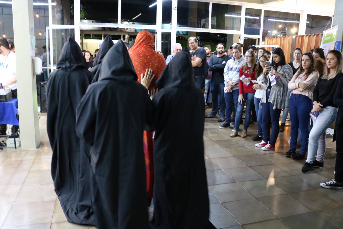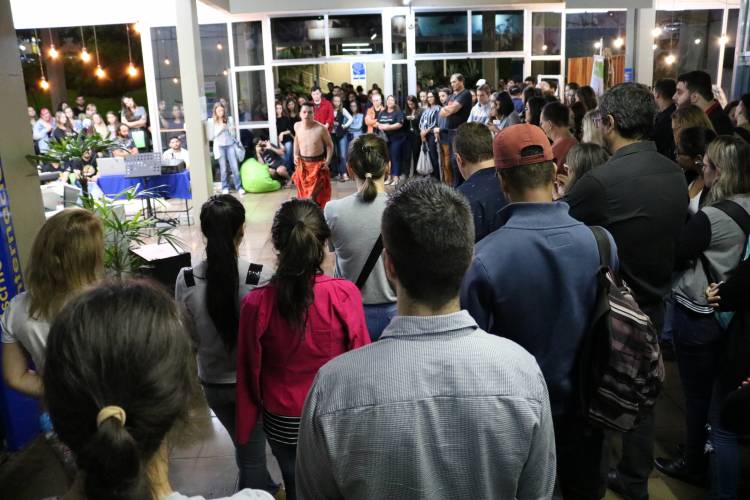 Com o objetivo de promover reflexão e marcar o Dia Internacional da Mulher, a FIDENE/Unijuí organizou diversas atividades nesta sexta-feira. No Campus Ijuí, um ato no Hall de entrada da Biblioteca Mario Osorio Marques, envolvendo bate-papo, música e performance artística reuniu estudantes, professores e técnicos-administrativos.
