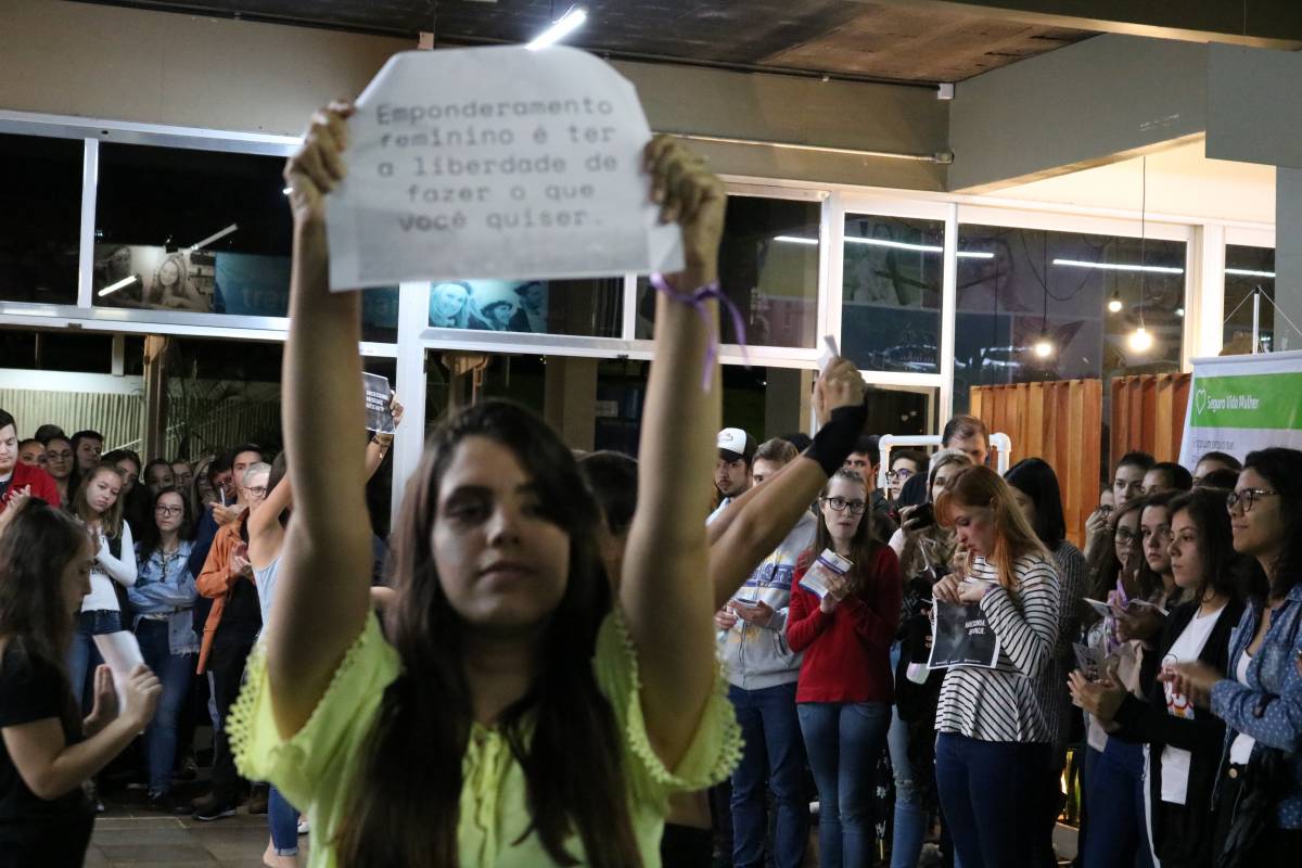 O ato iniciou com uma apresentação do Coral Unijuí. Em seguida, a Cia. Cadagy fez uma performance artísticas inspirada no musical “A Opera do Malandro”, de Chico Buarque de Holanda. Na sequência, Patrícia Prante Machado, representante do Sicredi, apoiador do evento, fez uma fala. Logo após, ocorreu o bate-papo com delegado Ricardo Miron, intitulada “Papo sobre elas – segurança da mulher é assuntos de todos”. Ele trouxe informações sobre leis, além de apresentar dados sobre violência contra a mulher. Para encerrar o ato, a Reitora da Unijuí fez uma fala: “Um dia de luta, não de comemoração”, frisou. Além do Sicredi, em Ijuí o evento teve o apoio do Sinpro Noroeste e do Sintep Noroeste.