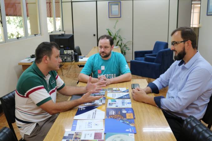 Durante a tarde de quarta-feira (10), o Pró-reitor do Campus Santa Rosa, professor Marcos Paulo Scherer juntamente com o Coordenador do curso de Educação Física, professor Robson Borges, receberam na Unijuí o representante do Rotary Club Santa Rosa Júnior, Edson Luís Lautharte, para tratarem de possíveis ações envolvendo a Universidade e a entidade, beneficiando a comunidade santa-rosense.