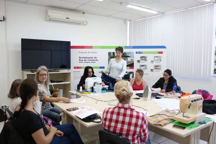 Artesãs já realizaram treinamentos para a confecção de peças a partir do tecido de guarda-chuvas e sombrinhas