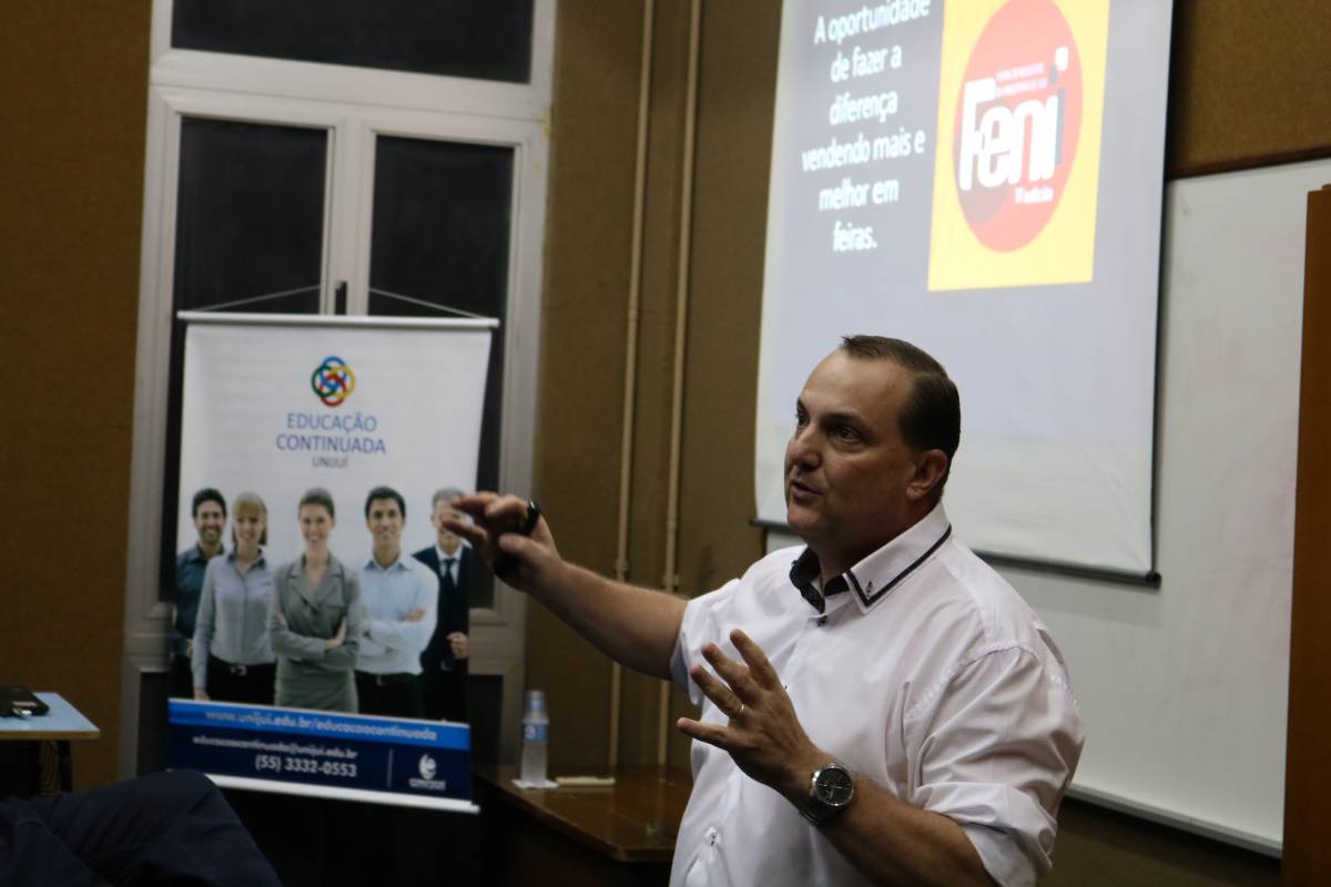 Com o objetivo de mostrar oportunidades de negócio, planejamento e estratégias de vendas, a Unijuí prestou formação a expositores da Feira de Negócios da Indústria de Ijuí (Fenii), que acontecerá de 1º a 5 de maio no Parque de Exposições Wanderley Burmann. A atividade ocorreu na noite desta terça-feira, dia 16, no Campus Ijuí e foi ministrada pelo gerente de Marketing da Unijuí, Giancarlo Bottega, através da Unidade de Educação Continuada da Universidade.