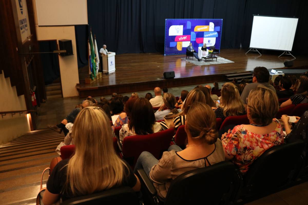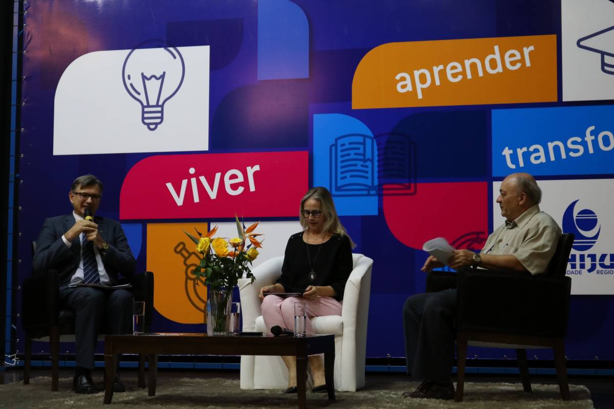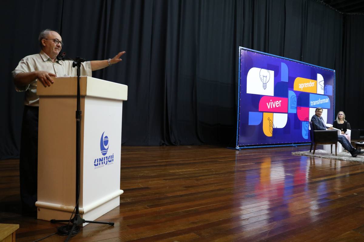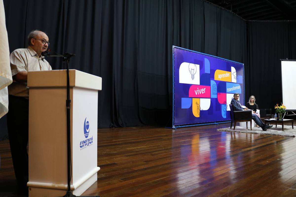 Dando sequência nas discussões para a revisão do Plano de Desenvolvimento Institucional (2020-2024), a Unijuí realizou, na tarde desta quarta-feira, 17, Seminário para discutir a conjuntura da educação superior comunitária. Neste evento, debateram o tema o professor Evaldo Kuiava, Reitor da UCS, de Caxias do Sul e o professor Walter Frantz, da Unijuí, com a mediação da Reitora, professora Cátia Maria Nehring. O evento foi realizado no Salão de Atos Argemiro Jacob Brum com a participação de gestores, professores, estudantes e técnicos-administrativos das Instituição.