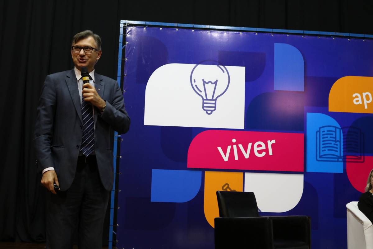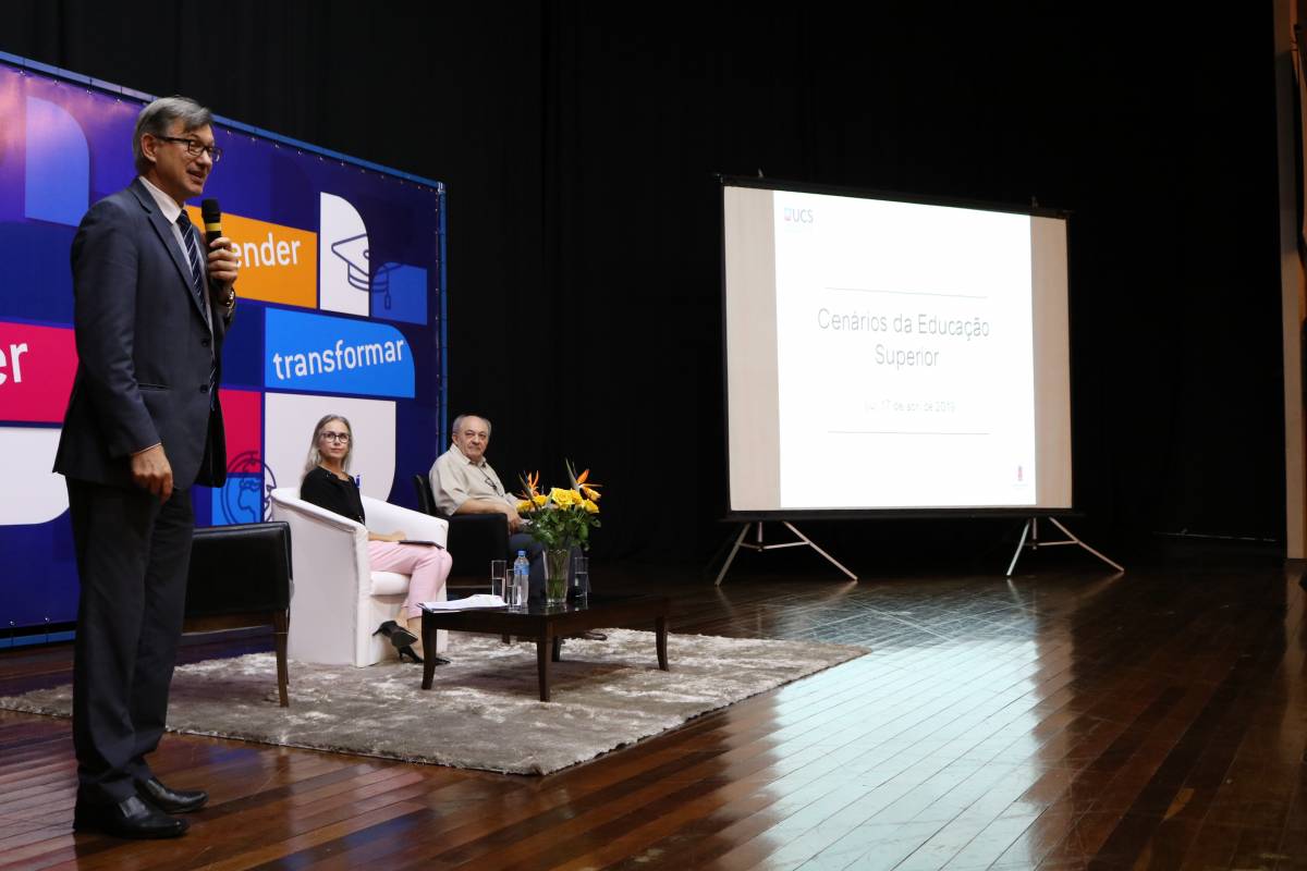 Na sequência o professor Evaldo Kuiava projetou cenários para a educação superior. Segundo ele, um dos grandes desafios é manter as estruturas das Universidades Comunitárias, de professores, pesquisas, laboratórios, sem depender apenas das mensalidades geradas no ensino. “Precisamos buscar diferenciais, encontrar caminhos. Considero importante desenvolver Parques de Ciência e Tecnologia e fazer com que as comunidades nos valorizem por isto. Com a inovação e a transferência de tecnologia, outras instituições não conseguem competir conosco, este é um diferencial das Universidades”, observou. O palestrante também falou sobre a gestão das IES Comunitárias e como este aspecto precisa ser melhorado, além de mostrar algumas iniciativas da UCS nos últimos anos.